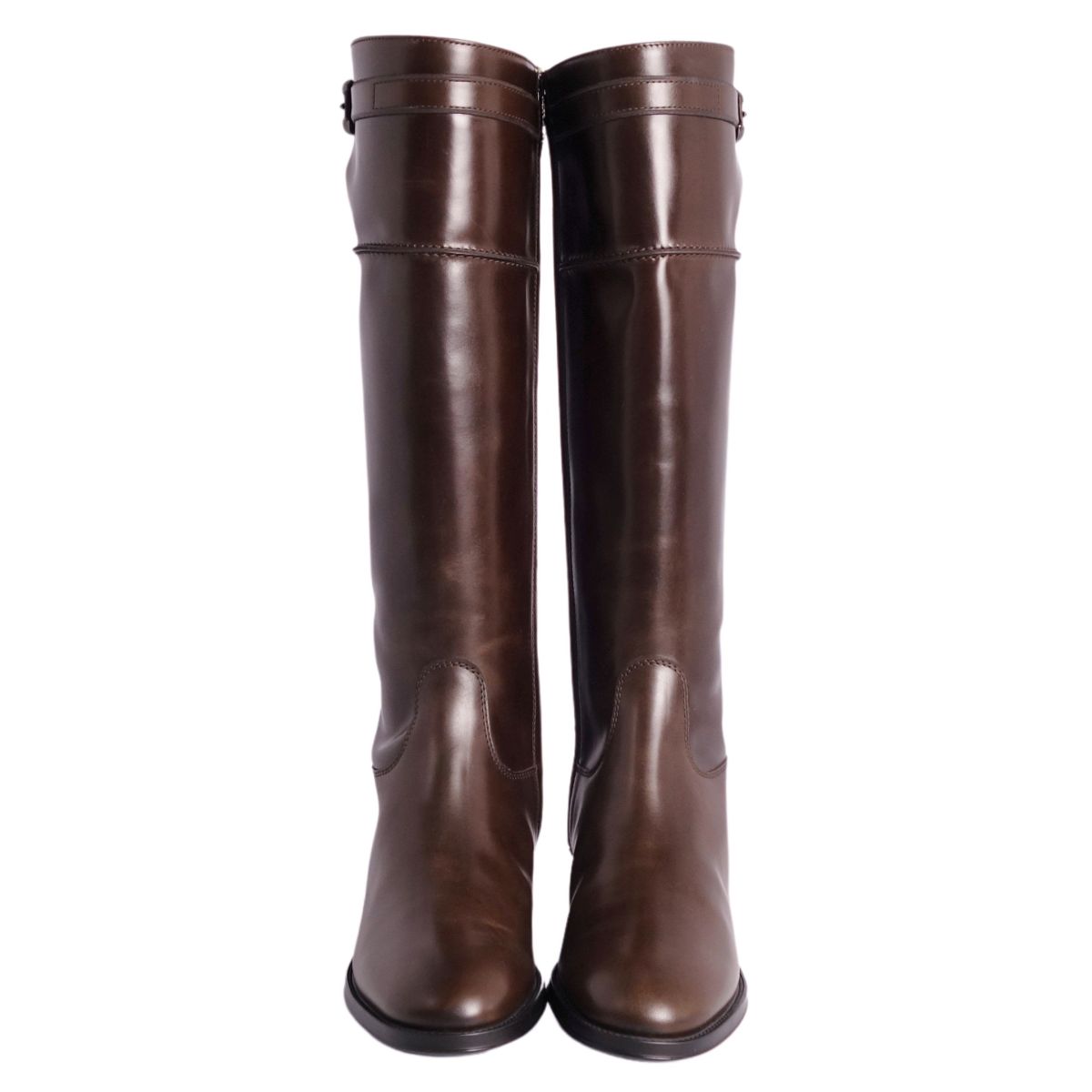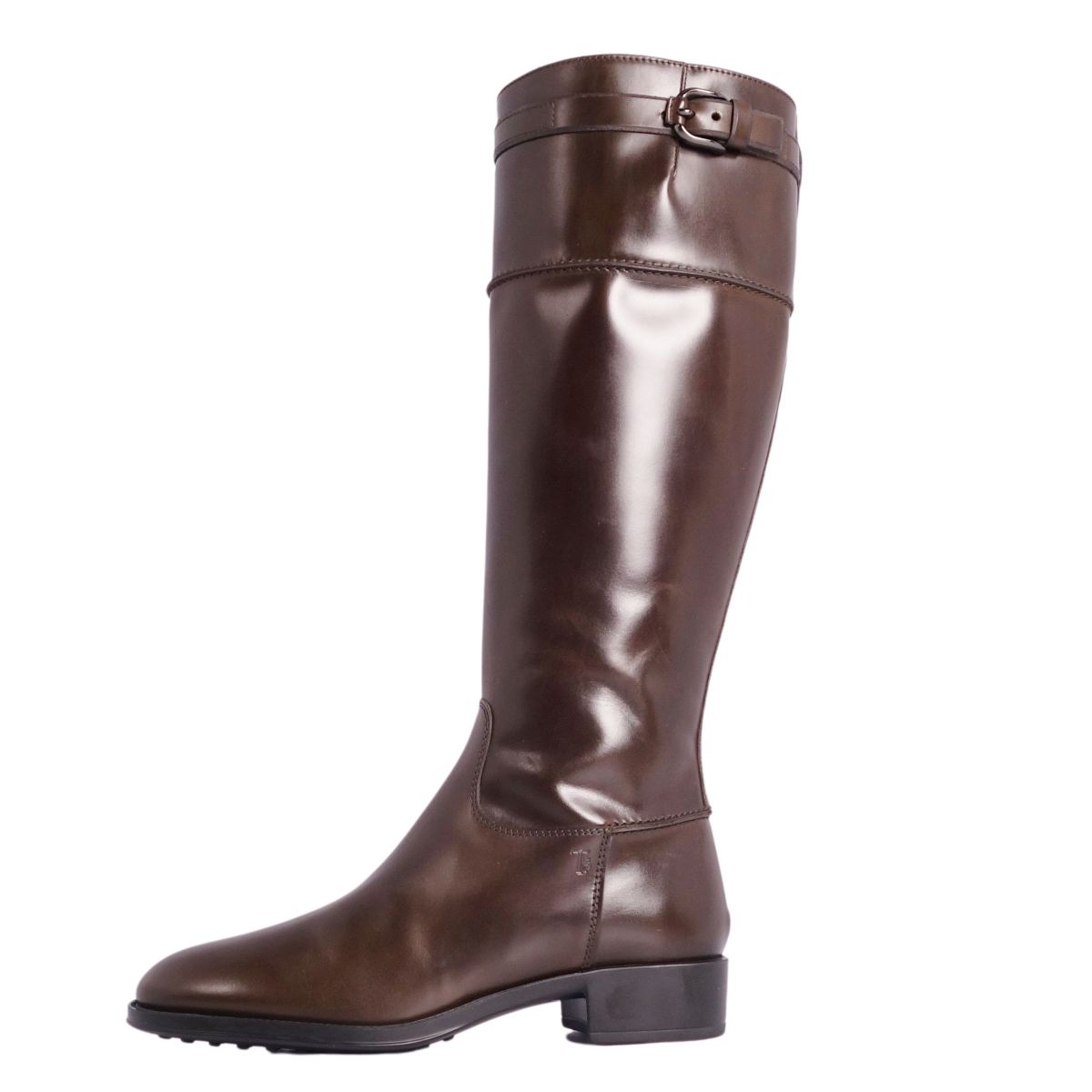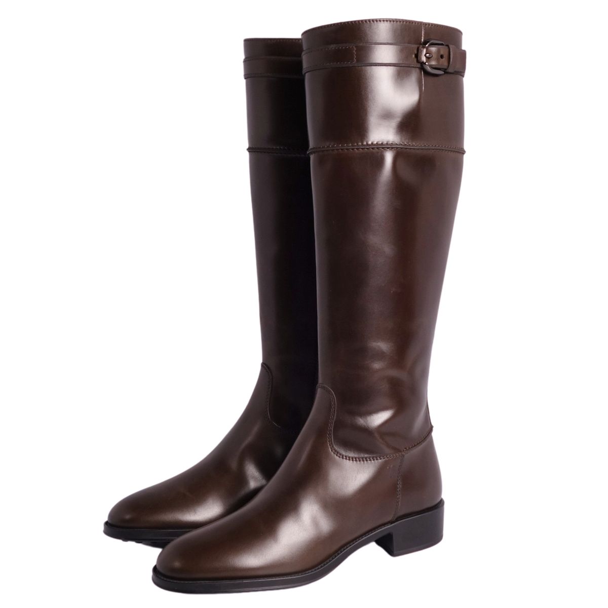 トッズ TOD’S ブーツ ロングブーツ サイドファスナー レザー シューズ 靴 レディース イタリア製 ブラウン サイズ38(25cm相当)