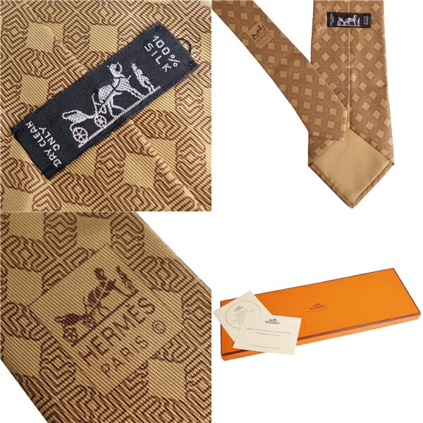 商品名 【極美品】エルメス HERMES ネクタイ 総柄 シルク100% メンズ フランス製 ブラウン【中古】