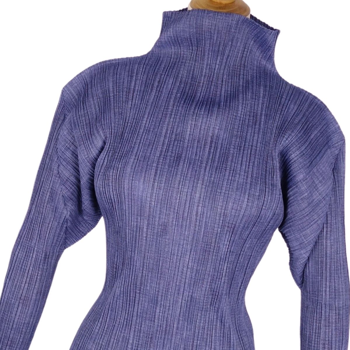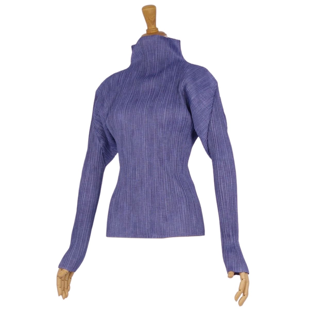 ・1本の糸から素材を開発し、服の形に縫製した後にプリーツをかける独自の手法によるプロダクト、ISSEY MIYAKE『PLEATS PLEASE』のハイネックブラウスです♪