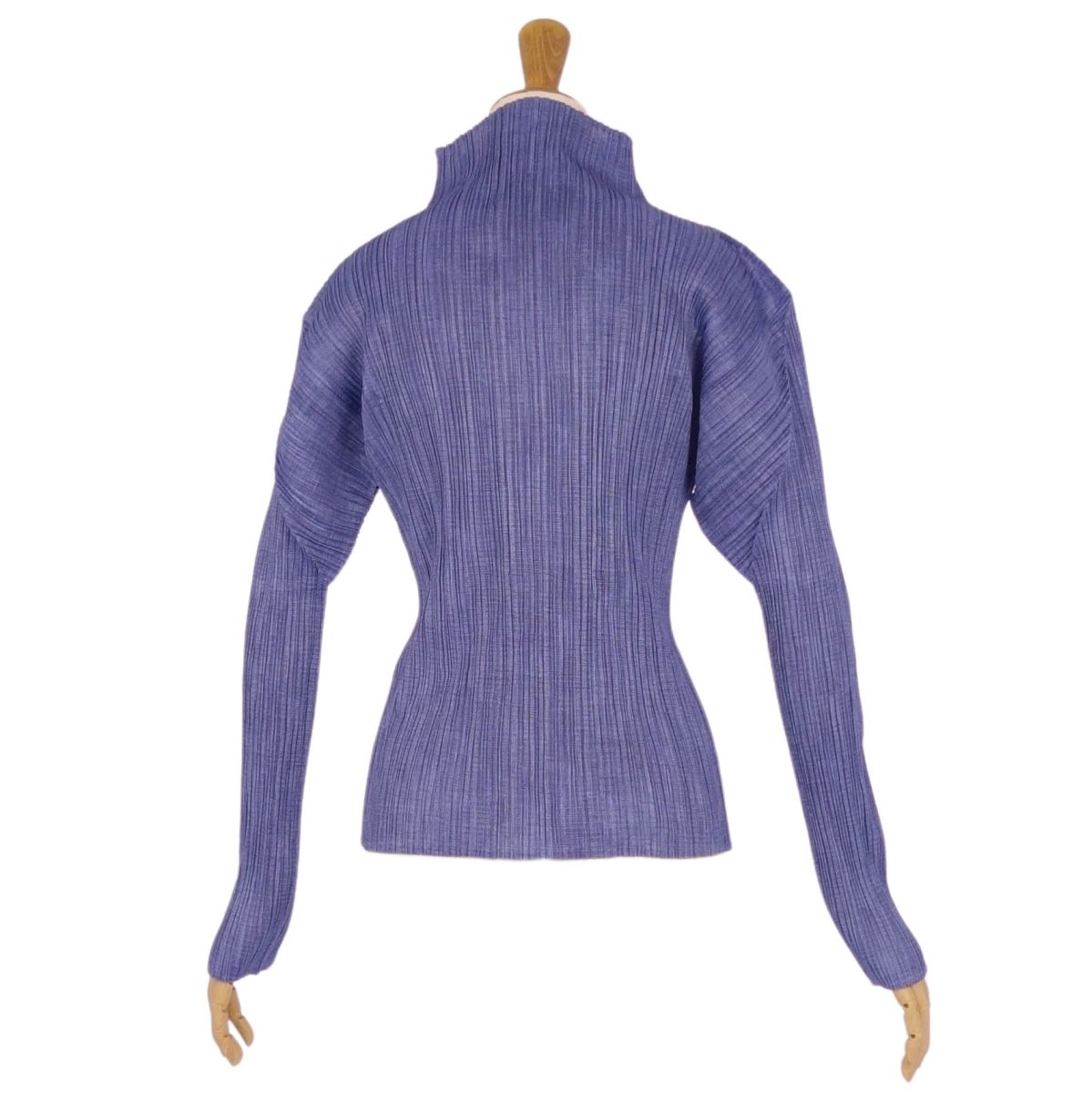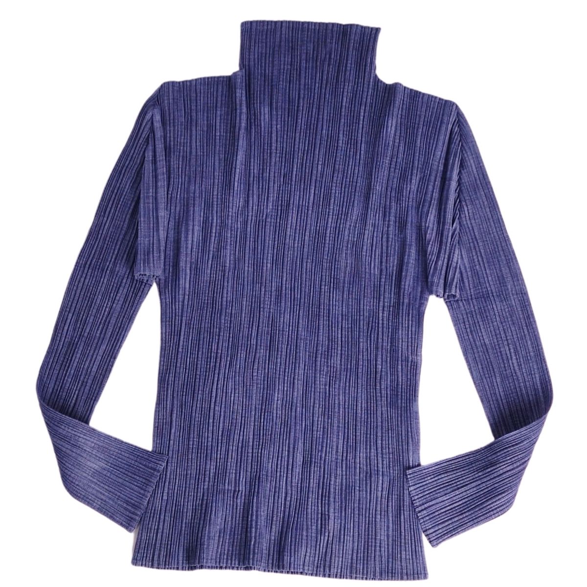 プリーツプリーズ イッセイミヤケ PLEATS PLEASE シャツ ブラウス ハイネック ロングスリーブ 長袖 プリーツ 無地 トップス レディース ブルー サイズ3(L相当)