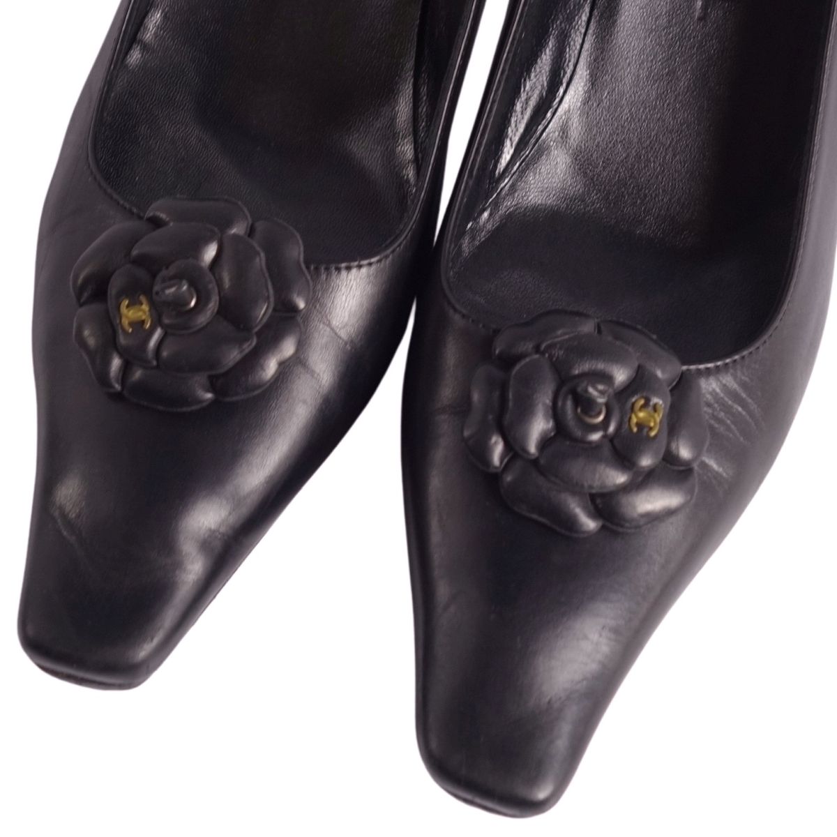 シャネル CHANEL パンプス カメリア ココマーク ヒール シューズ 靴 レディース イタリア製 ブラック サイズ37C