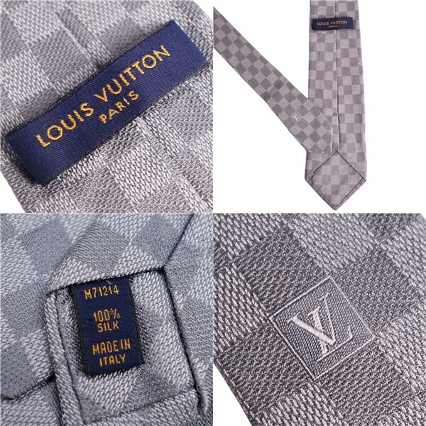 ルイヴィトン LOUIS VUITTON ネクタイ ダミエ シルク M71214 メンズ イタリア製 グレー サイズ-