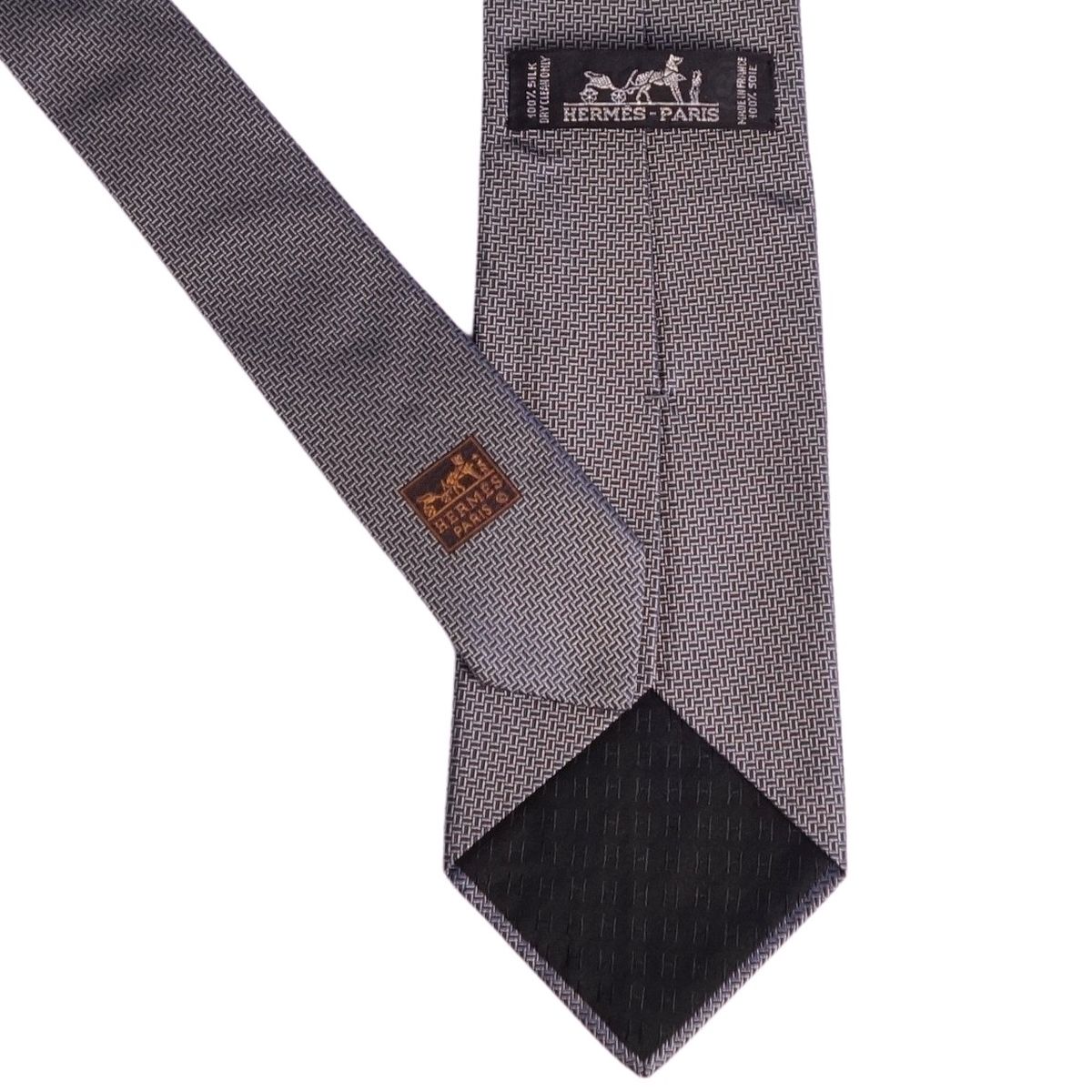 エルメス HERMES ネクタイ 総柄 シルク100% メンズ フランス製 グレー サイズ-