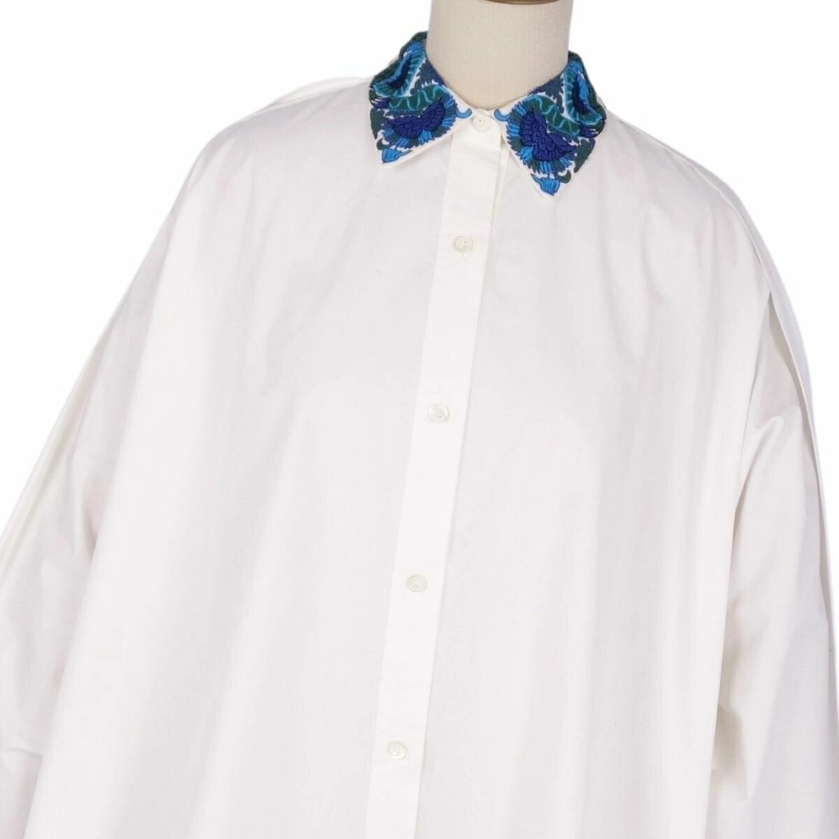 ロエベ LOEWE シャツ ブラウス ロングスリーブ 長袖 襟刺繍 コットン トップス レディース イタリア製 ホワイト サイズS