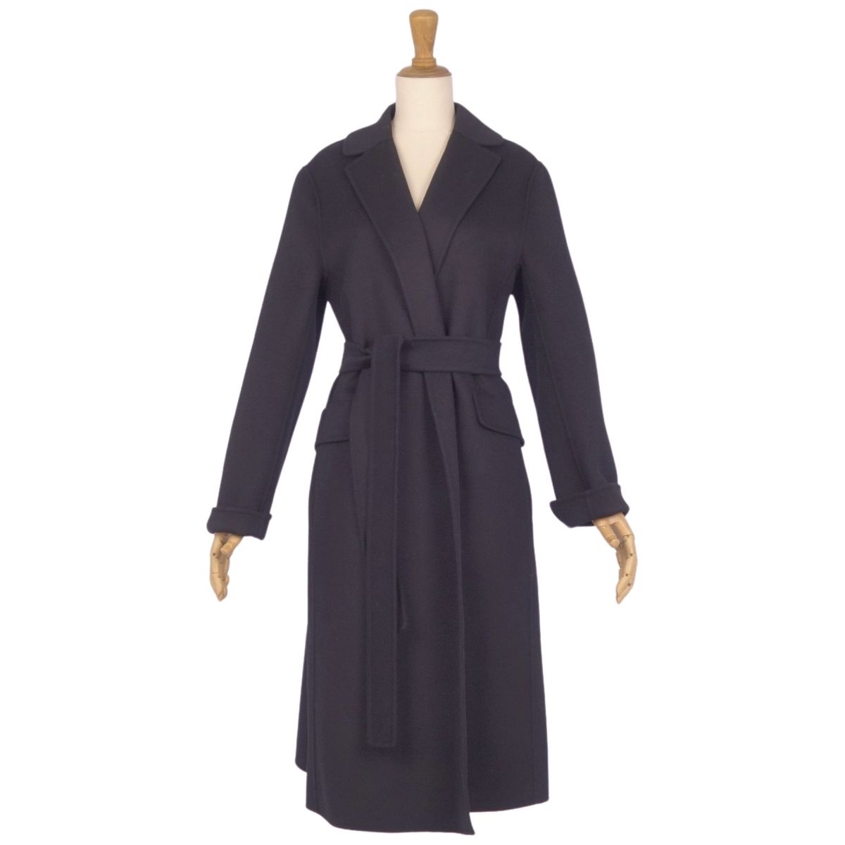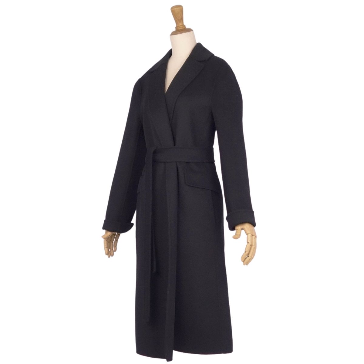 マックスマーラ S’Max Mara コート ベルト付き ロングコート cucito a mano クチートアマーノ ウール ダブルフェイス アウター レディース ブラック サイズJI42 USA8 GB8(L相当)