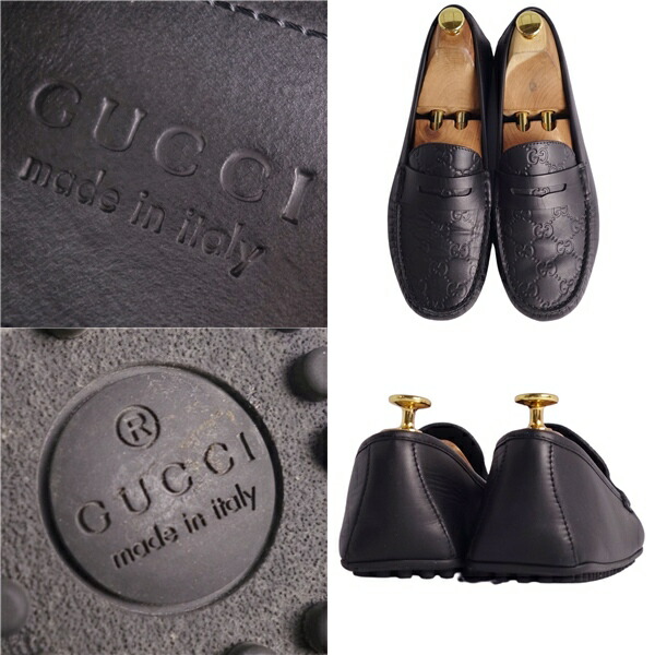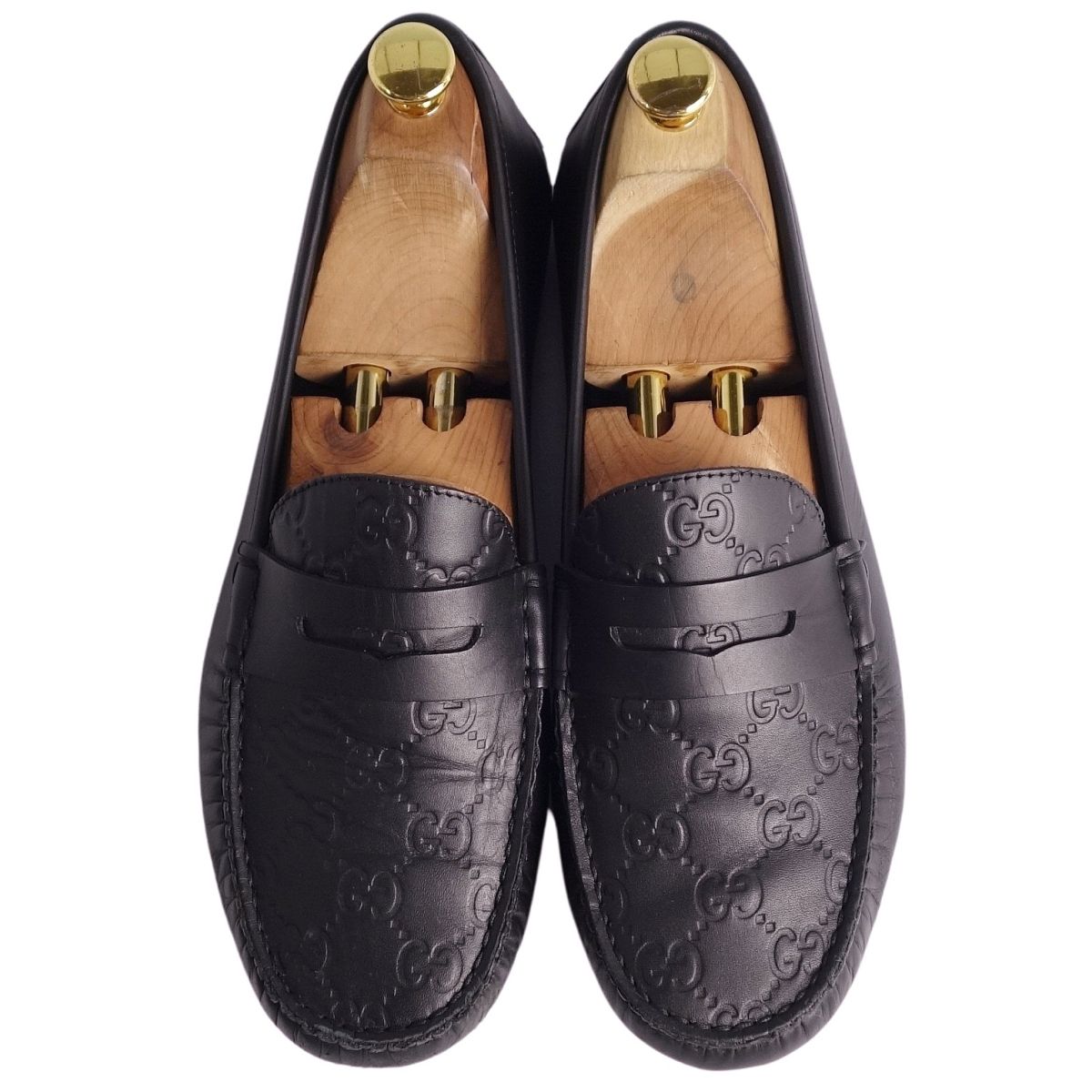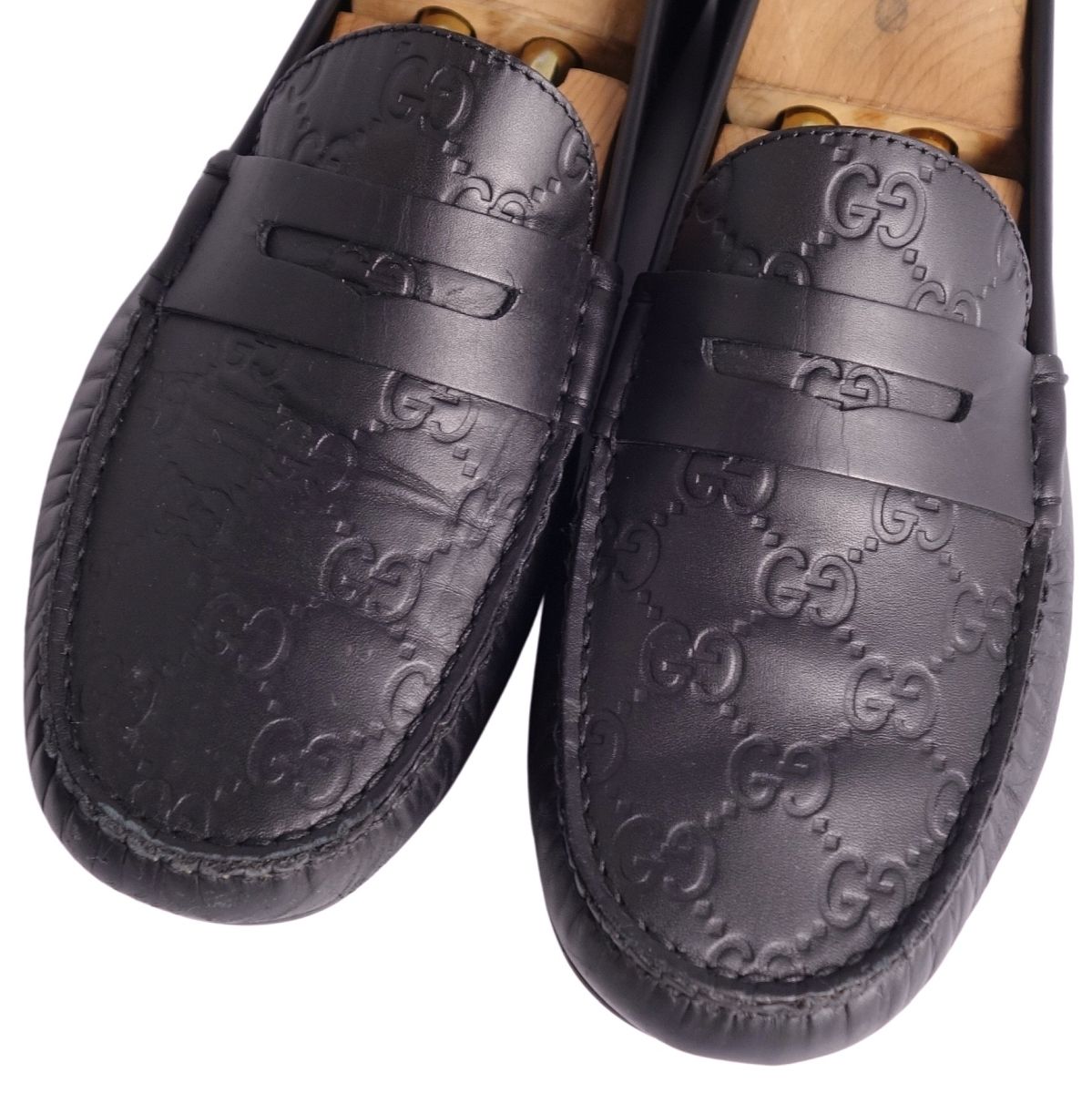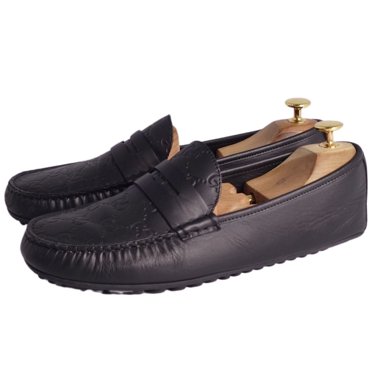 グッチ GUCCI ローファー ドライビングシューズ グッチシマ 革靴 メンズ イタリア製 ブラック サイズ7(26cm相当)
