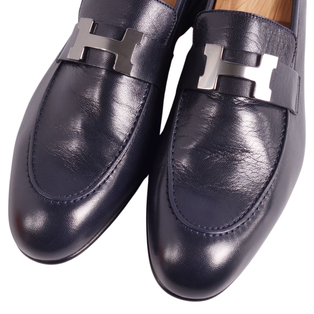 エルメス HERMES ローファー 2020 モカシン PARIS パリ コンスタンス Hロゴ金具 レザー シューズ メンズ ネイビー サイズ42.5(27.5cm相当)