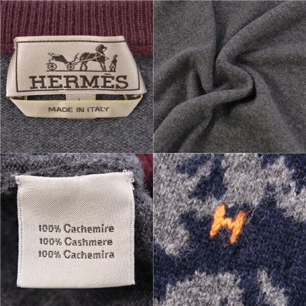エルメス HERMES ニット セーター プルオーバー カシミヤ100% トップス メンズ イタリア製 グレー サイズL