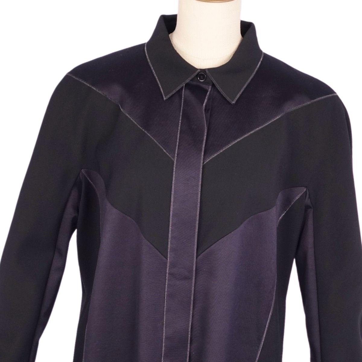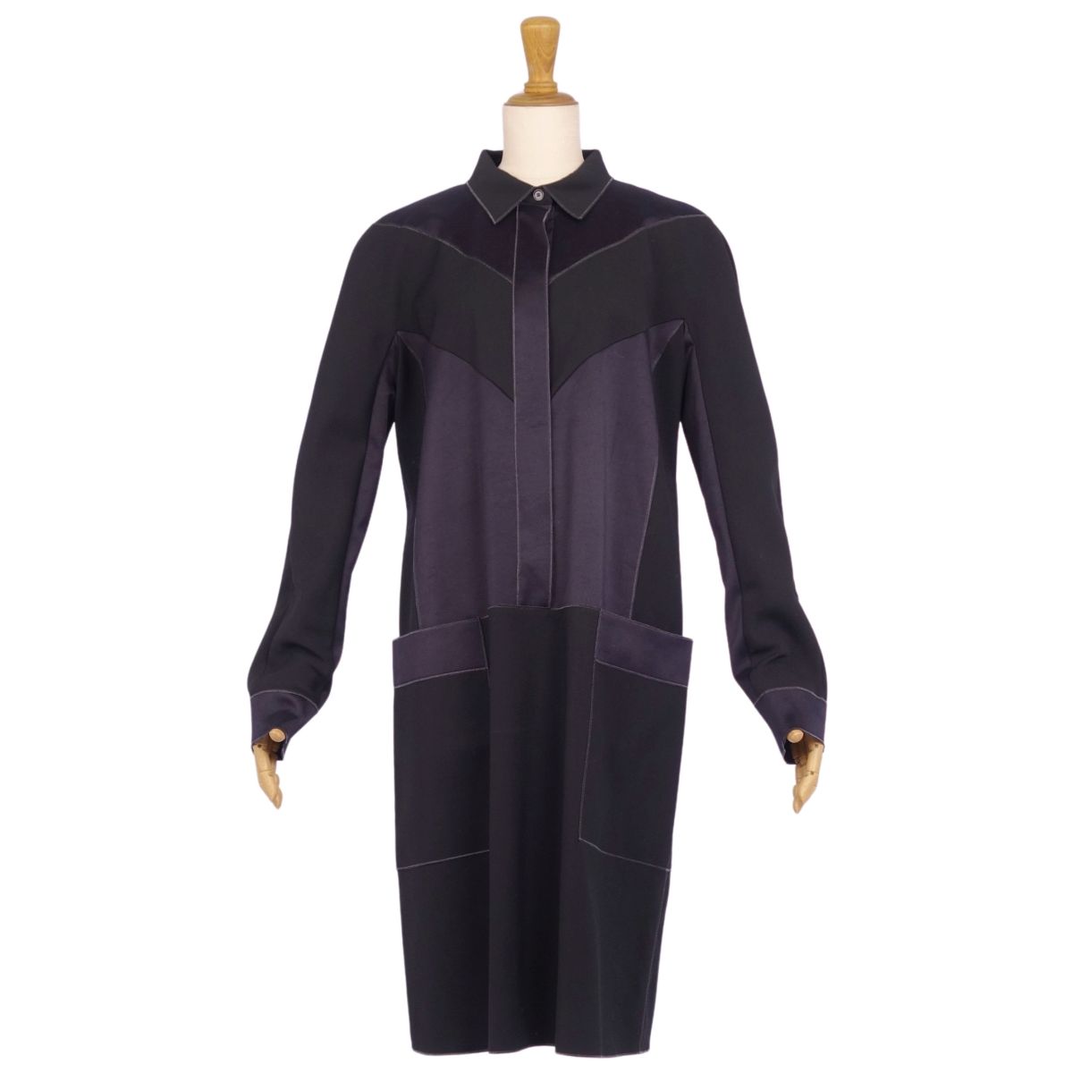商品名 【美品】ボッテガヴェネタ BOTTEGA VENETA ワンピース ロングスリーブ 長袖 レーヨン ウール トップス レディース イタリア製 42(L相当) ブラック/ネイビー【中古】