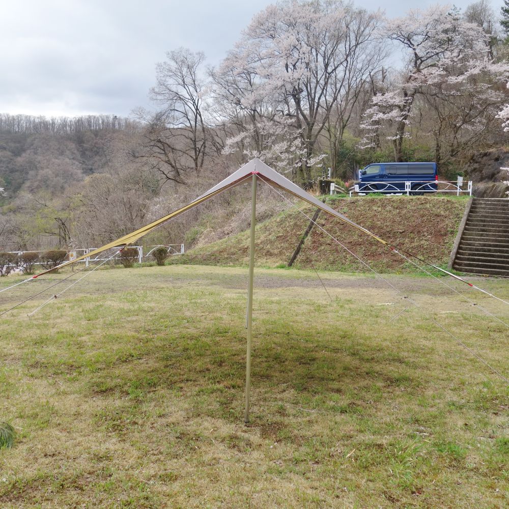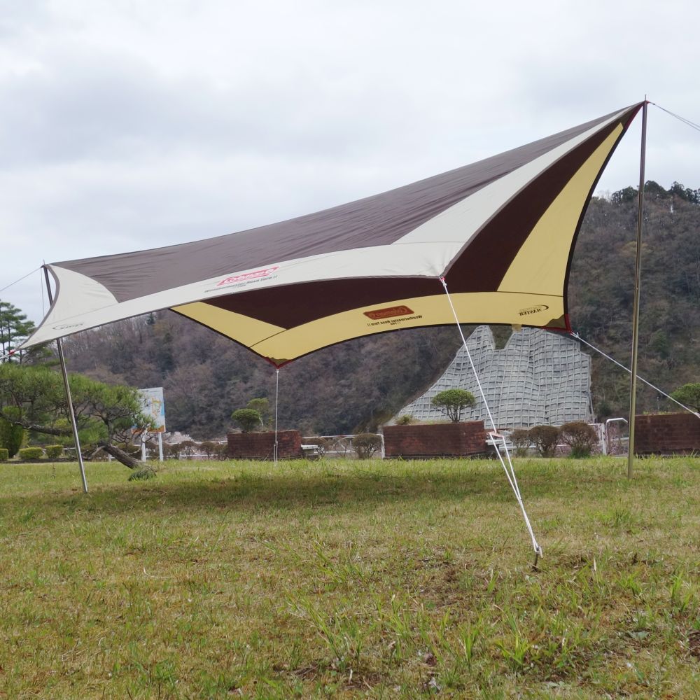 【付属品:タープ・ポール×2・張り綱・ペグ8本・ケース ※本来付属のハンマーは欠損の他付属はございません。】