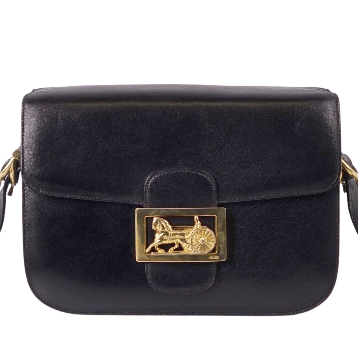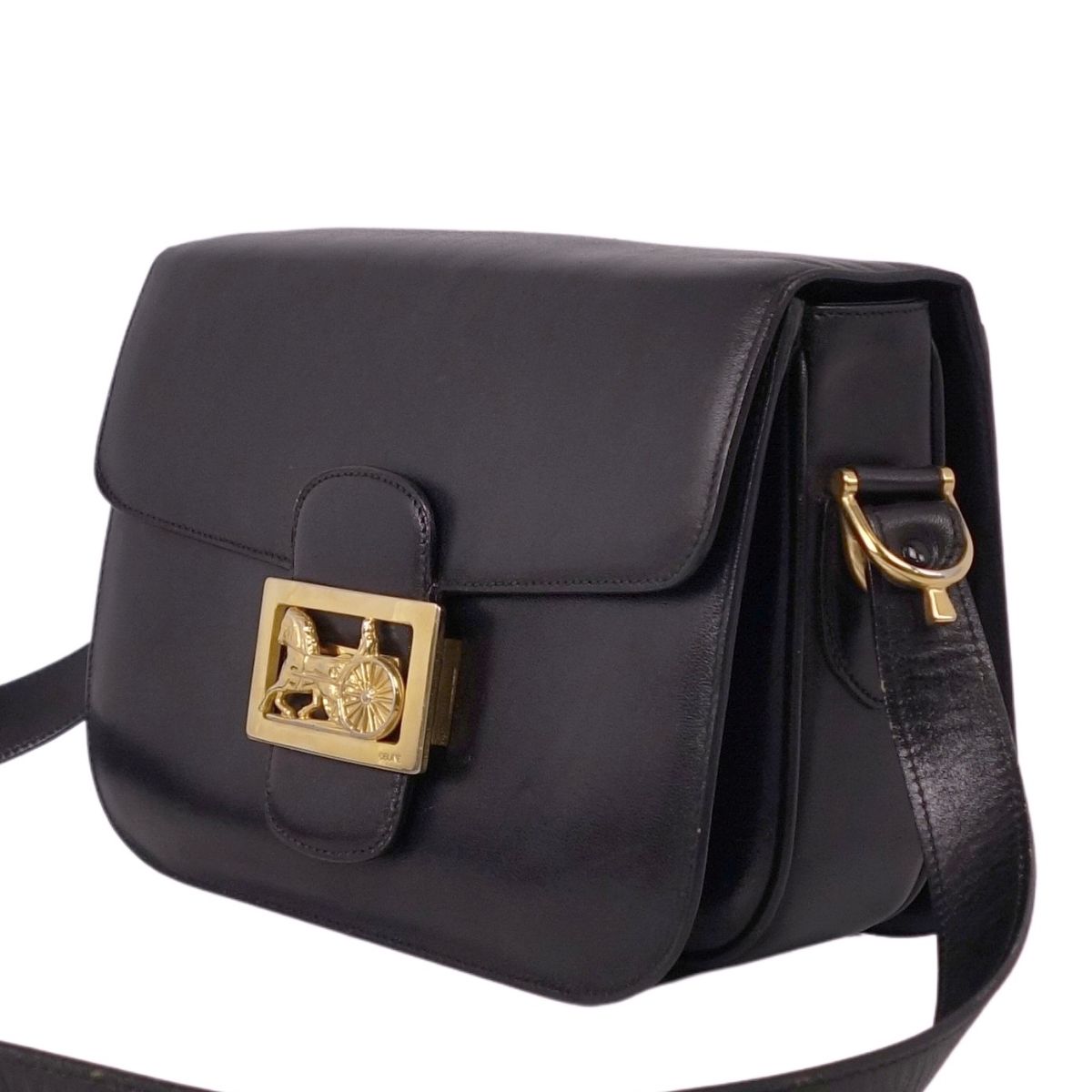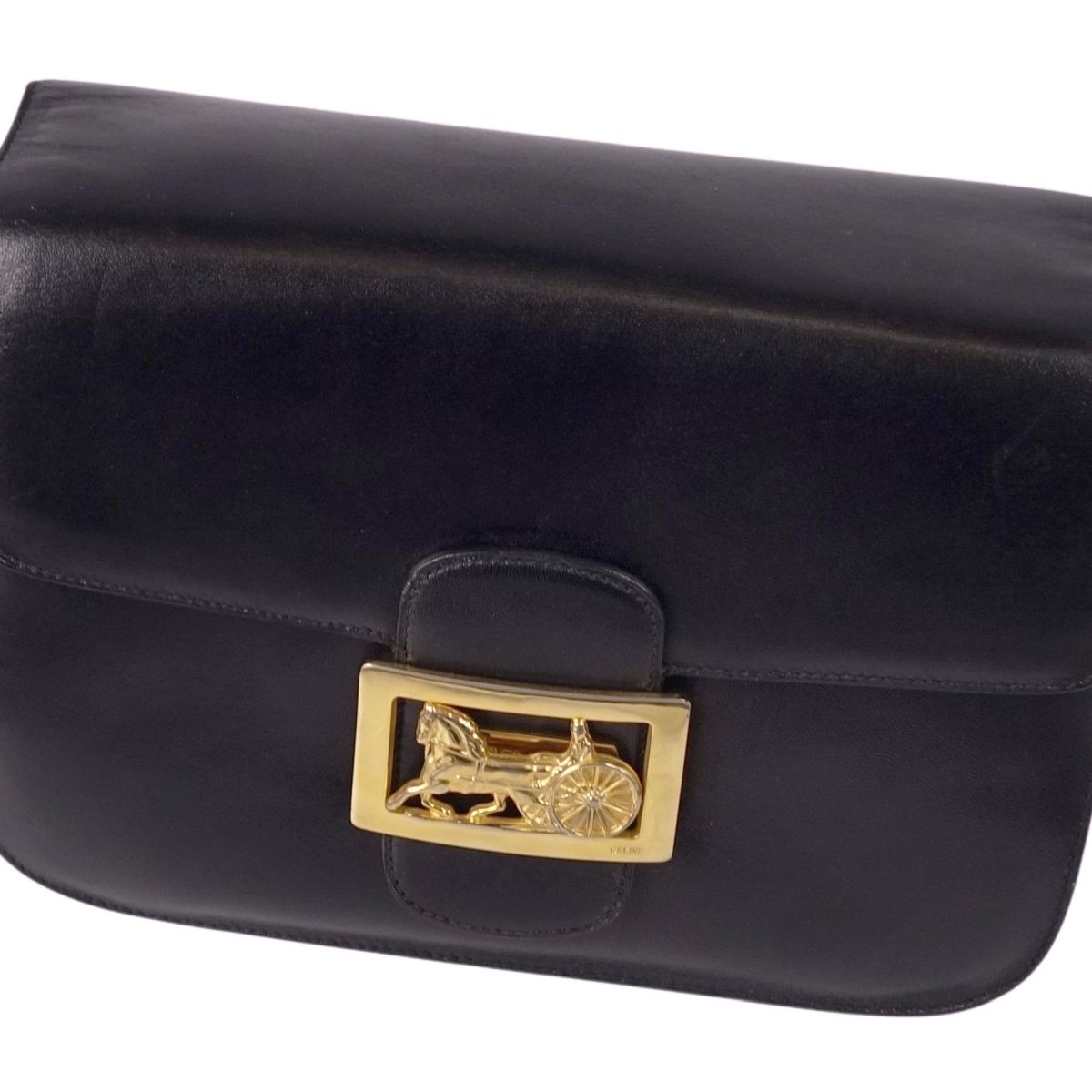 Vintage セリーヌ CELINE バッグ ショルダーバッグ 馬車金具 レザー カバン 鞄 レディース イタリア製 ブラック サイズ-