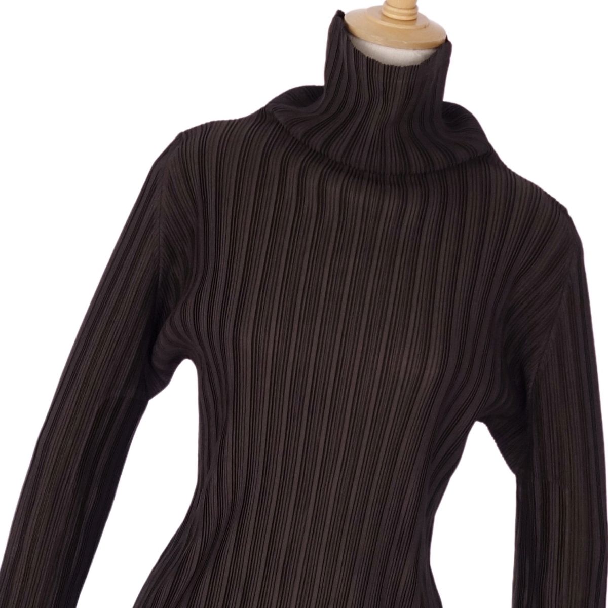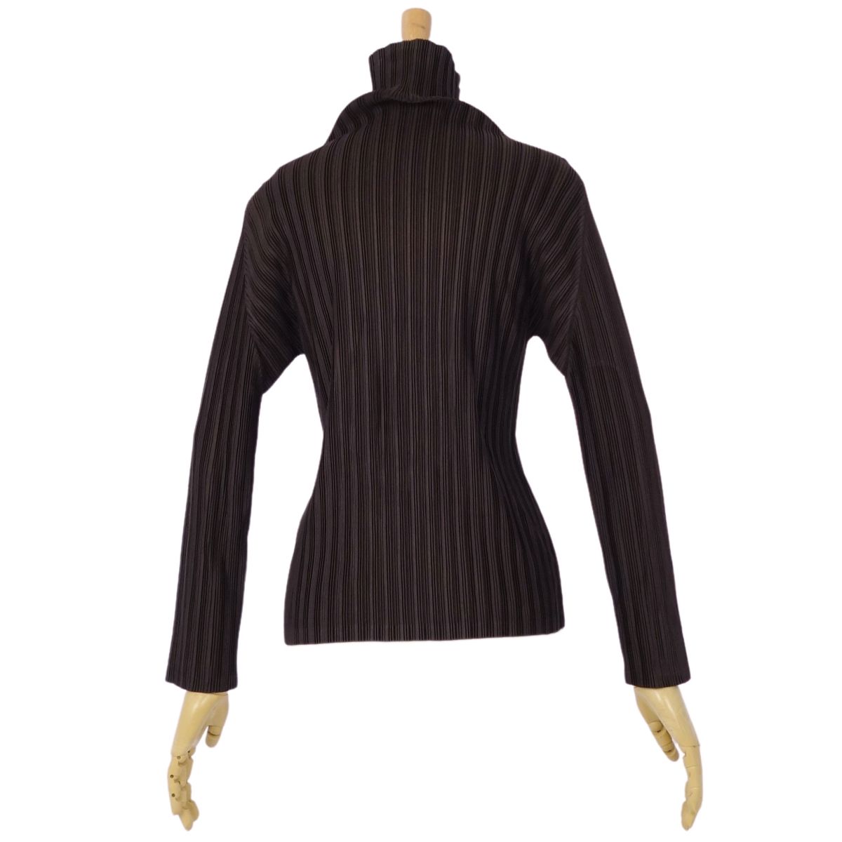 商品名 【極美品】プリーツプリーズ イッセイミヤケ PLEATS PLEASE シャツ ブラウス ハイネック プリーツ トップス レディース 3(L相当) ブラウン【中古】