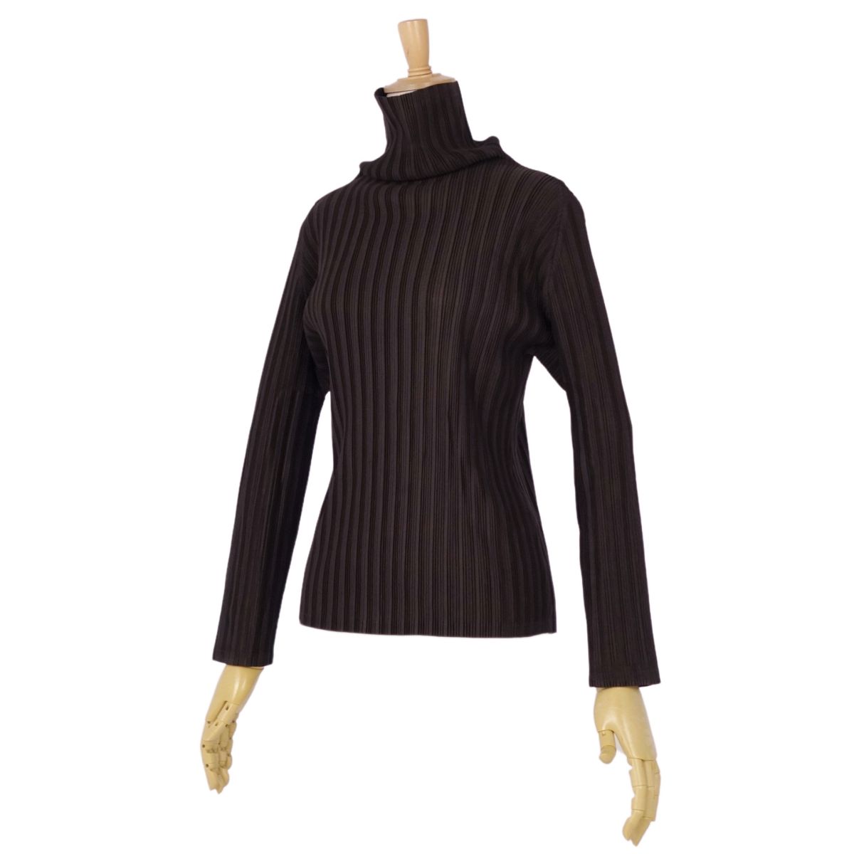 プリーツプリーズ イッセイミヤケ PLEATS PLEASE シャツ ブラウス ハイネック プリーツ トップス レディース ブラウン サイズ3(L相当)