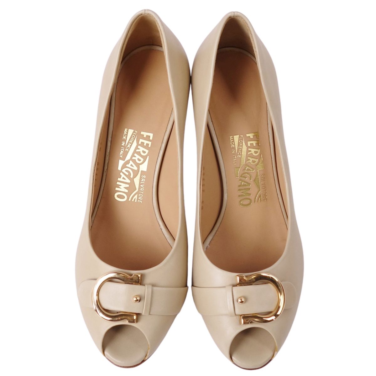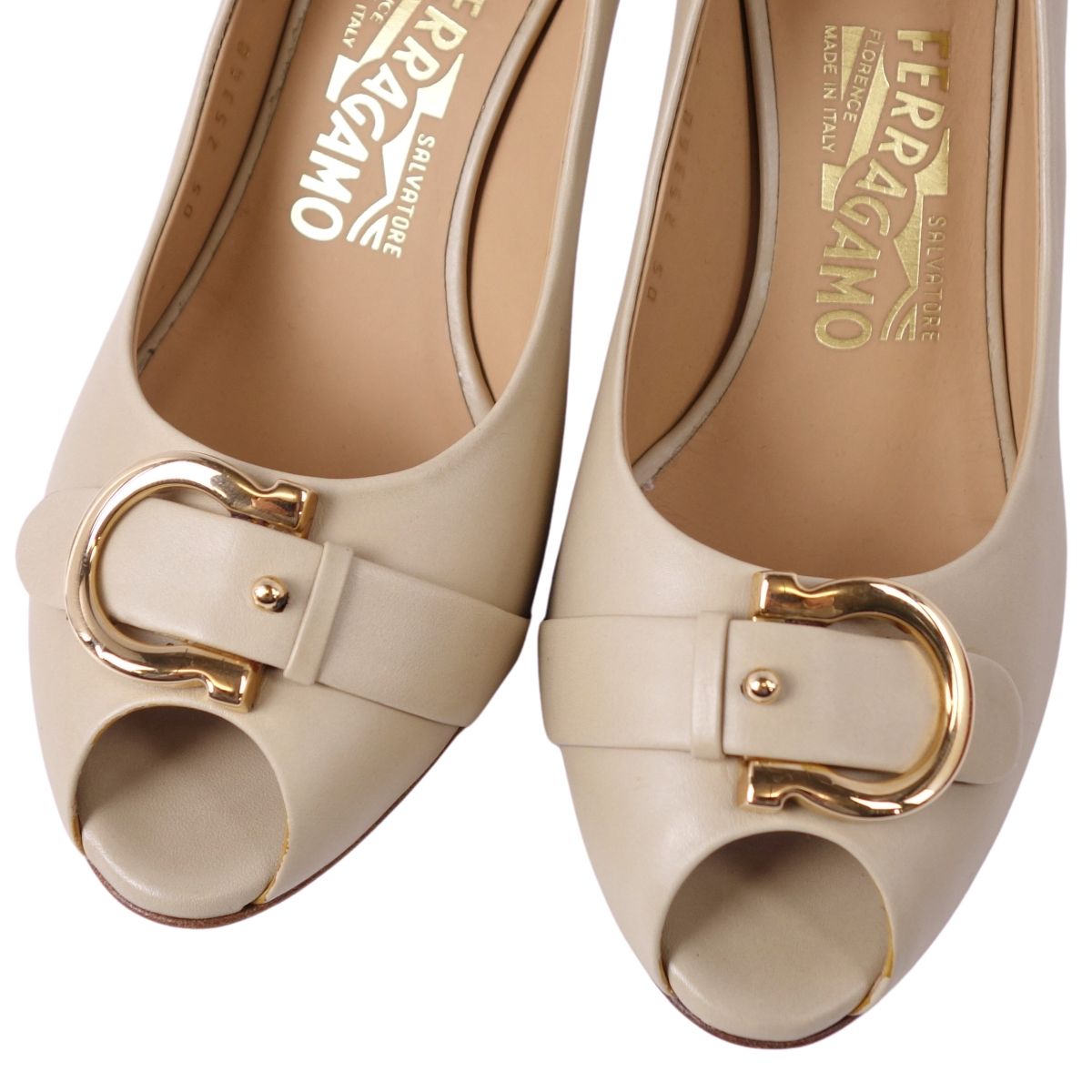 【新古品】サルヴァトーレ フェラガモ Salvatore Ferragamo パンプス ガンチーニ金具 レザー ヒール シューズ 靴 レディース イタリア製 5.5(23cm相当) ベージュ【中古】
