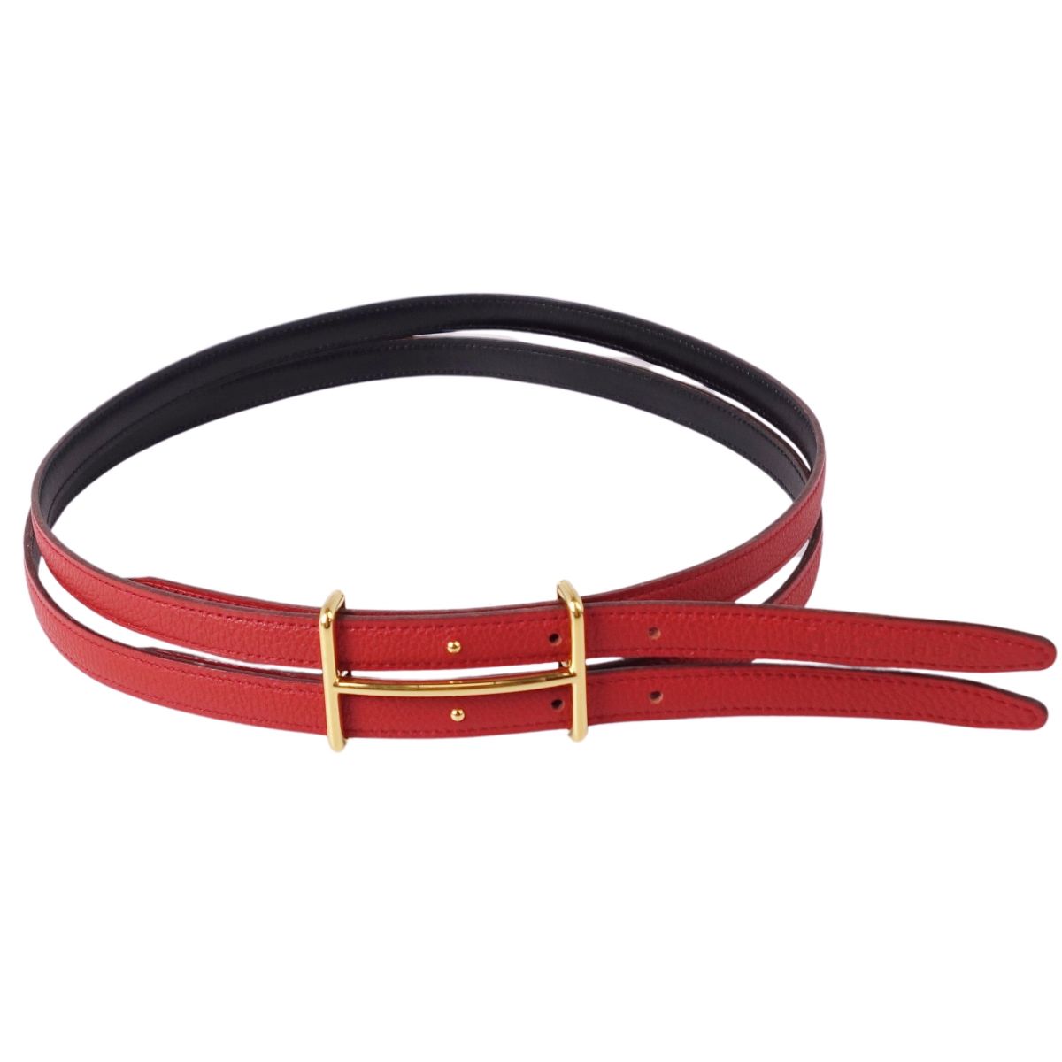 エルメス HERMES ベルト レザーベルト リバーシブル 2連 ダブル ゴールド金具 レディース フランス製 ブラック/レッド サイズ75