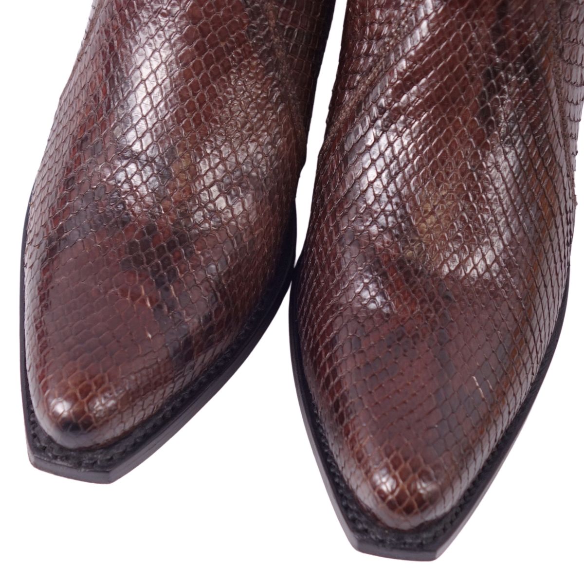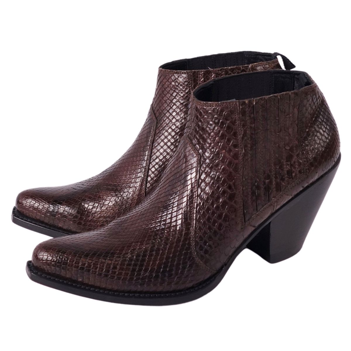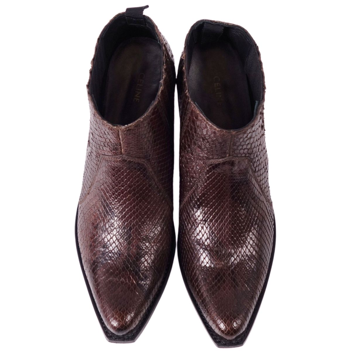 セリーヌ CELINE ブーツ ブーティー パイソンレザー ヒール シューズ 靴 レディース イタリア製 ブラウン サイズ37(24cm相当)