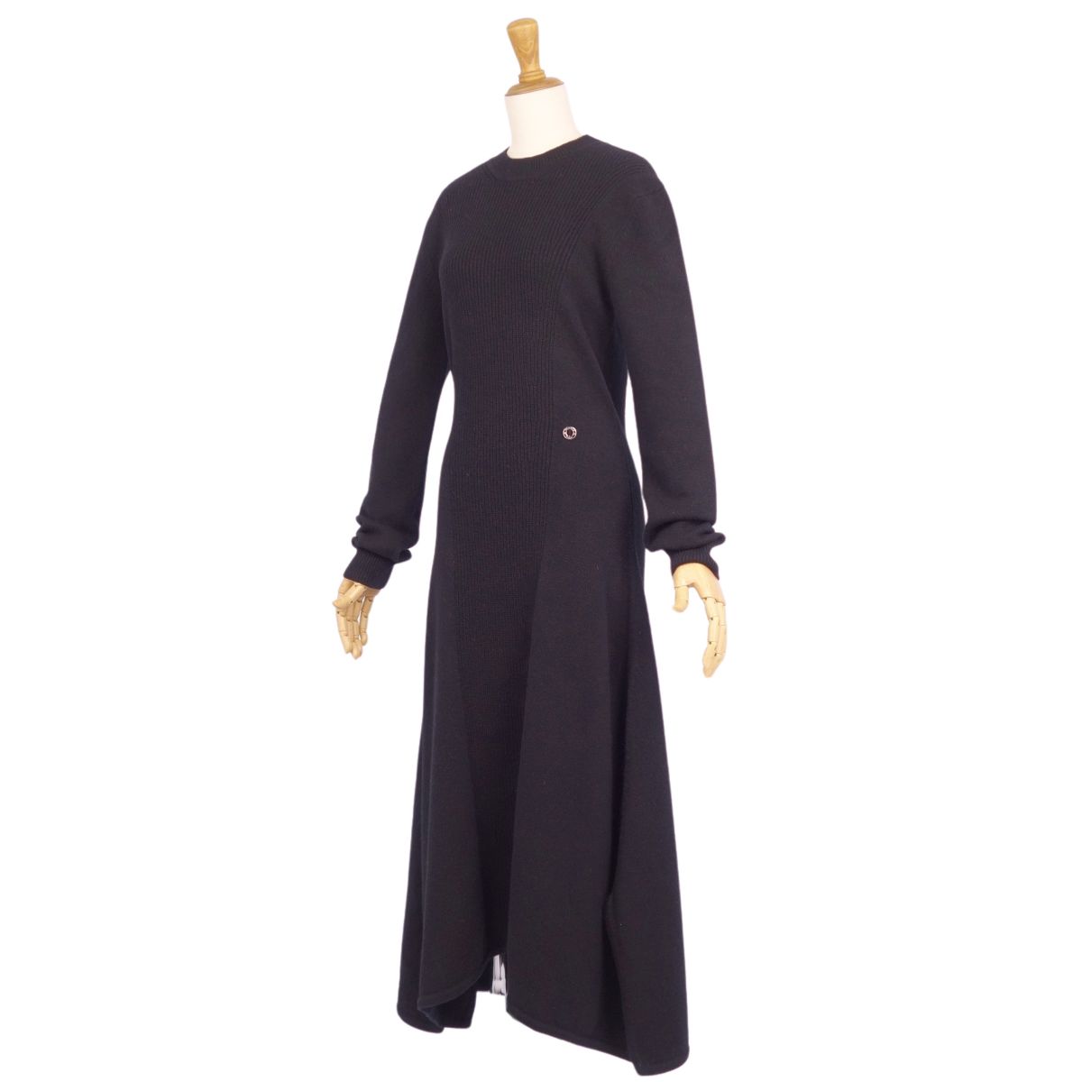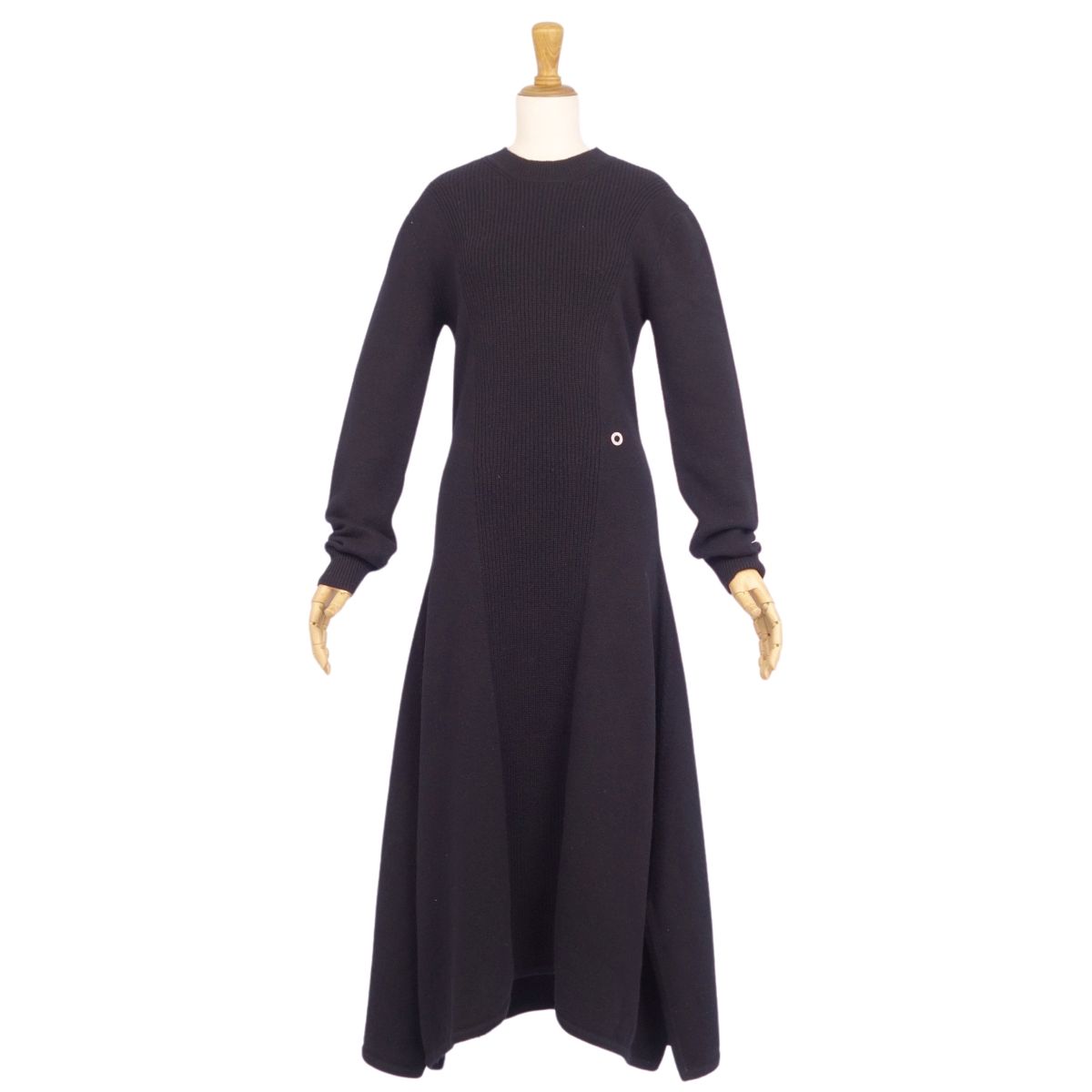 エルメス HERMES ワンピース 23AW ニット セーター ロングスリーブ 長袖 カシミヤ100% トップス レディース イギリス製 ブラック サイズ34(S相当)