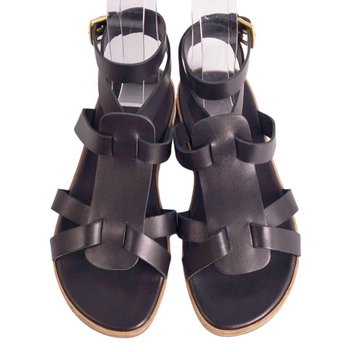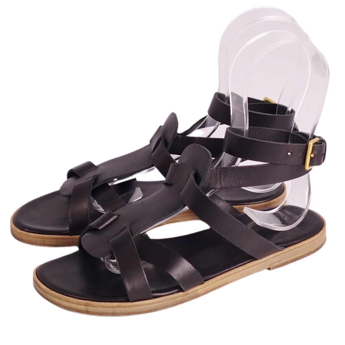 エルメス HERMES サンダル ストラップ レザー シューズ 靴 レディース イタリア製 ブラック サイズ34.5(21.5cm相当)