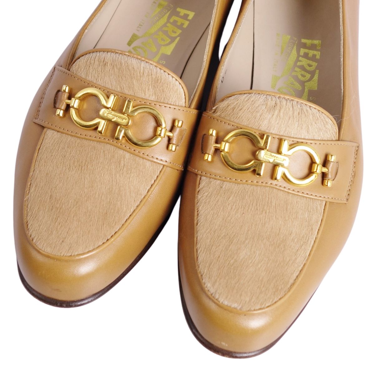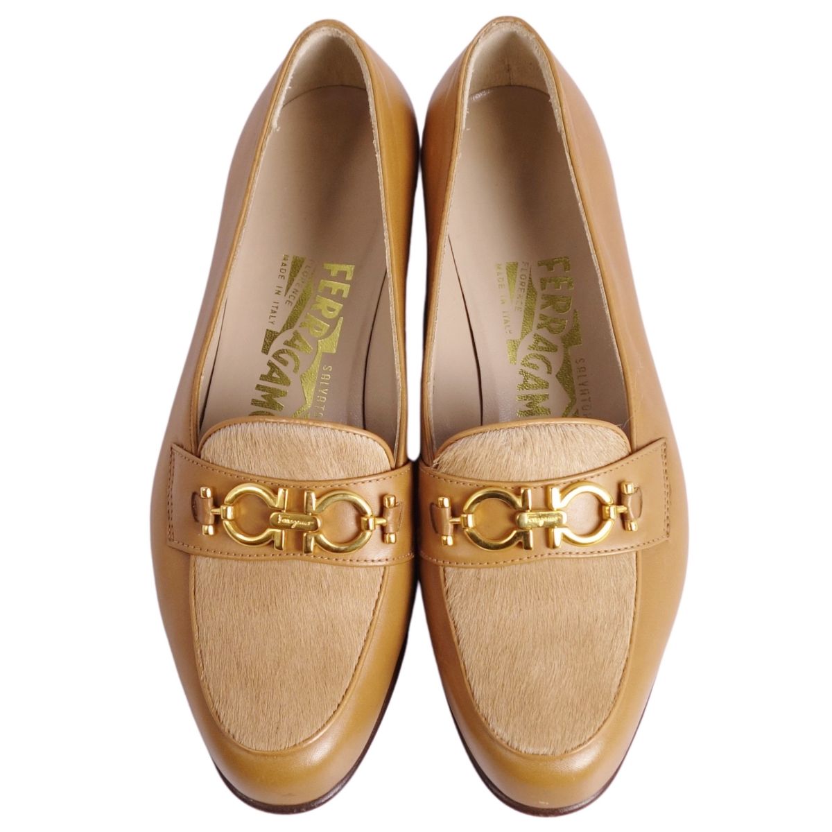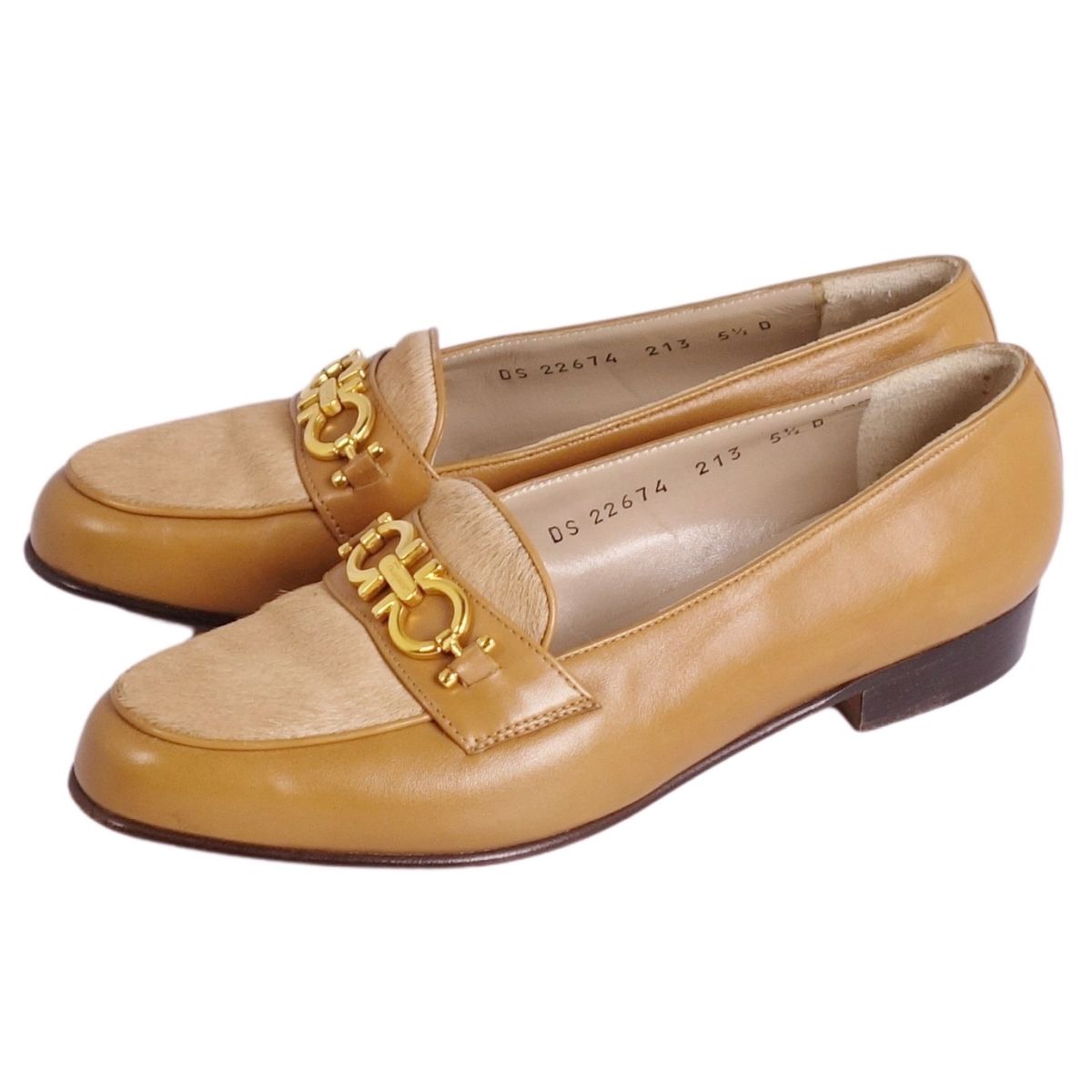 サルヴァトーレ フェラガモ Salvatore Ferragamo ローファー モカシン ガンチーニ ハラコ レザー シューズ 靴 レディース イタリア製 ベージュ サイズ5.5(23cm相当)