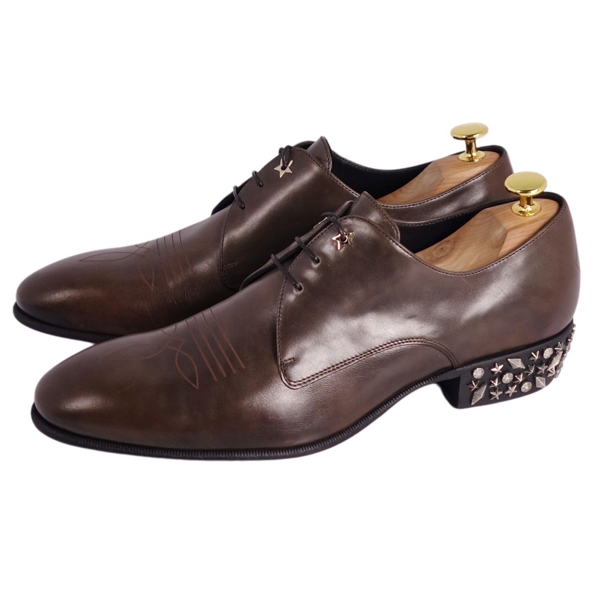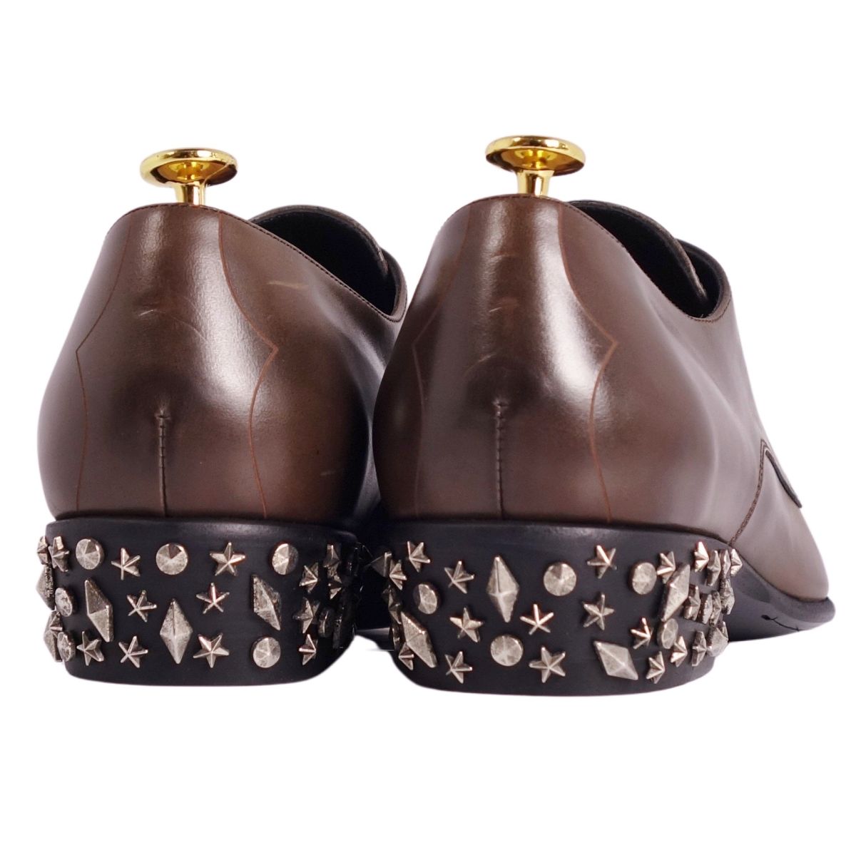 ジミーチュウ JIMMY CHOO レザーシューズ ダービーシューズ ビジネスシューズ スタッズ 革靴 メンズ イタリア製 ブラウン サイズ42(27cm相当)
