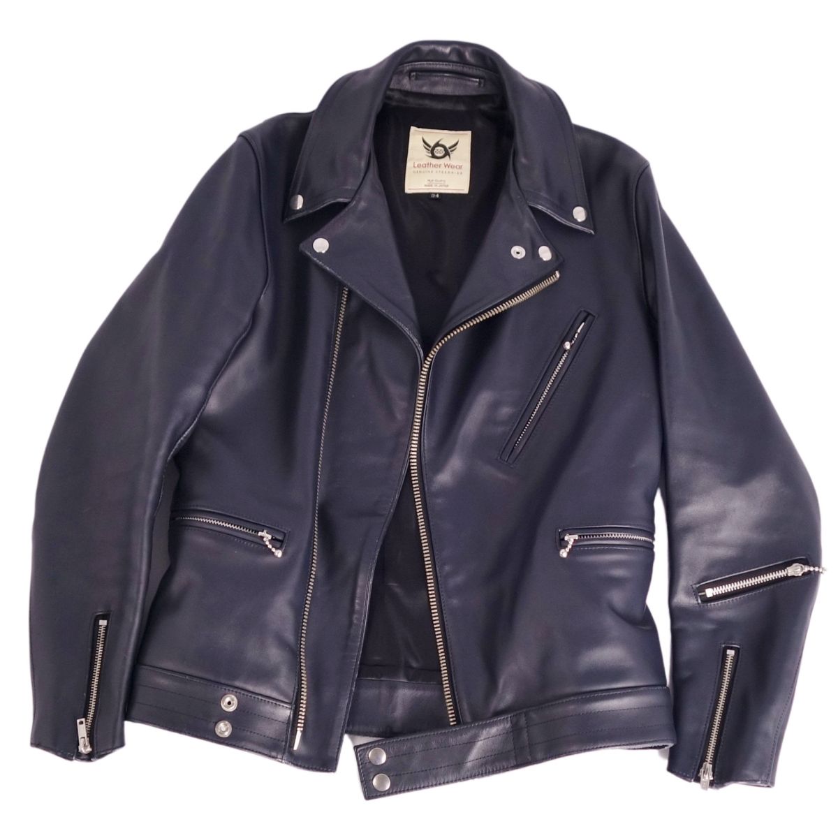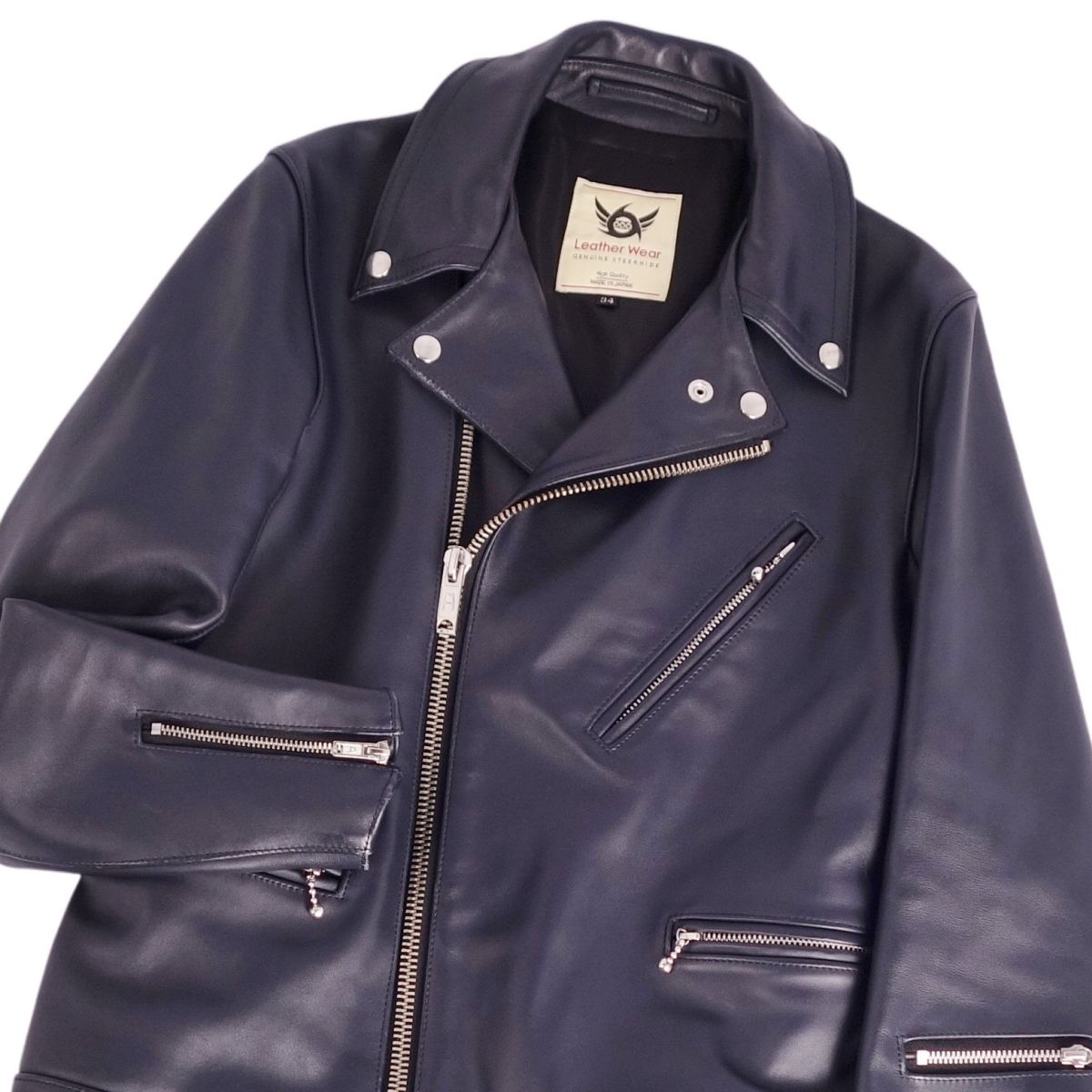 トリプルシックス ロクロクロク 666 ジャケット レザージャケット ダブルライダース ステアハイド 牛革 アウター メンズ ネイビー サイズ34(XS相当)