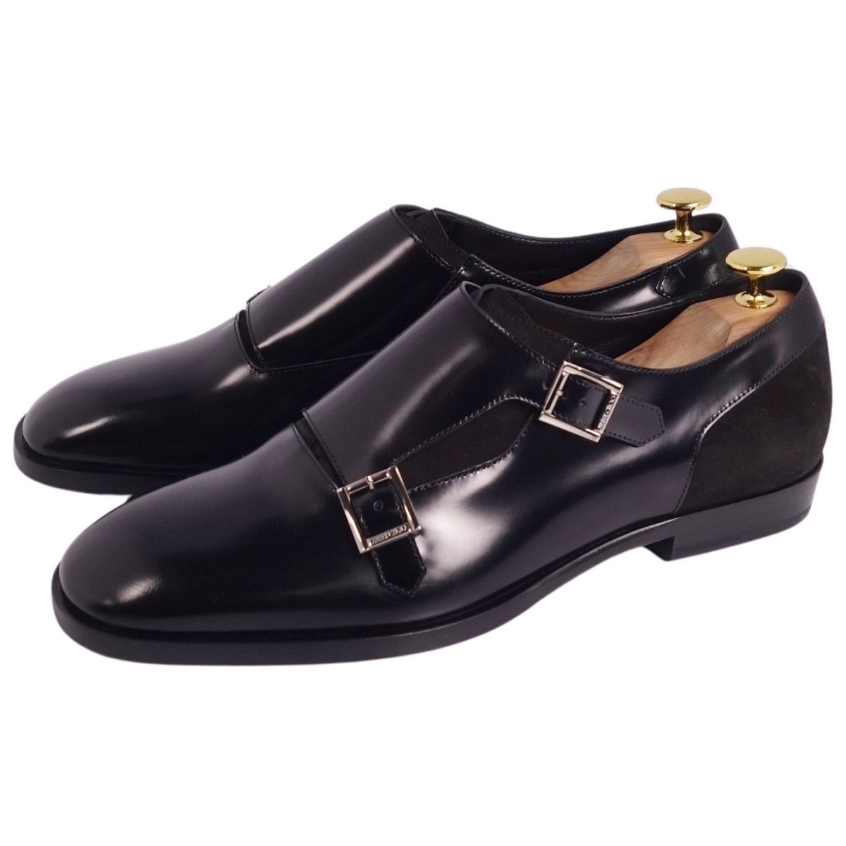 ジミーチュウ JIMMY CHOO レザーシューズ ビジネスシューズ ダブル モンクストラップ 革靴 メンズ イタリア製 ブラック サイズ42(27cm相当)