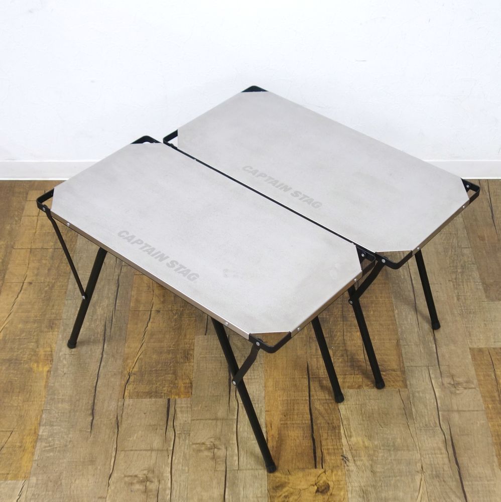 美品 キャプテンスタッグ CAPTAIN STAG 2way ステンレス サイド テーブル UC-555 2台セット キャンプ アウトドア【中古】