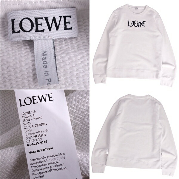 ロエベ LOEWE スウェット トレーナー ロゴ プルオーバー コットン トップス メンズ ホワイト サイズL