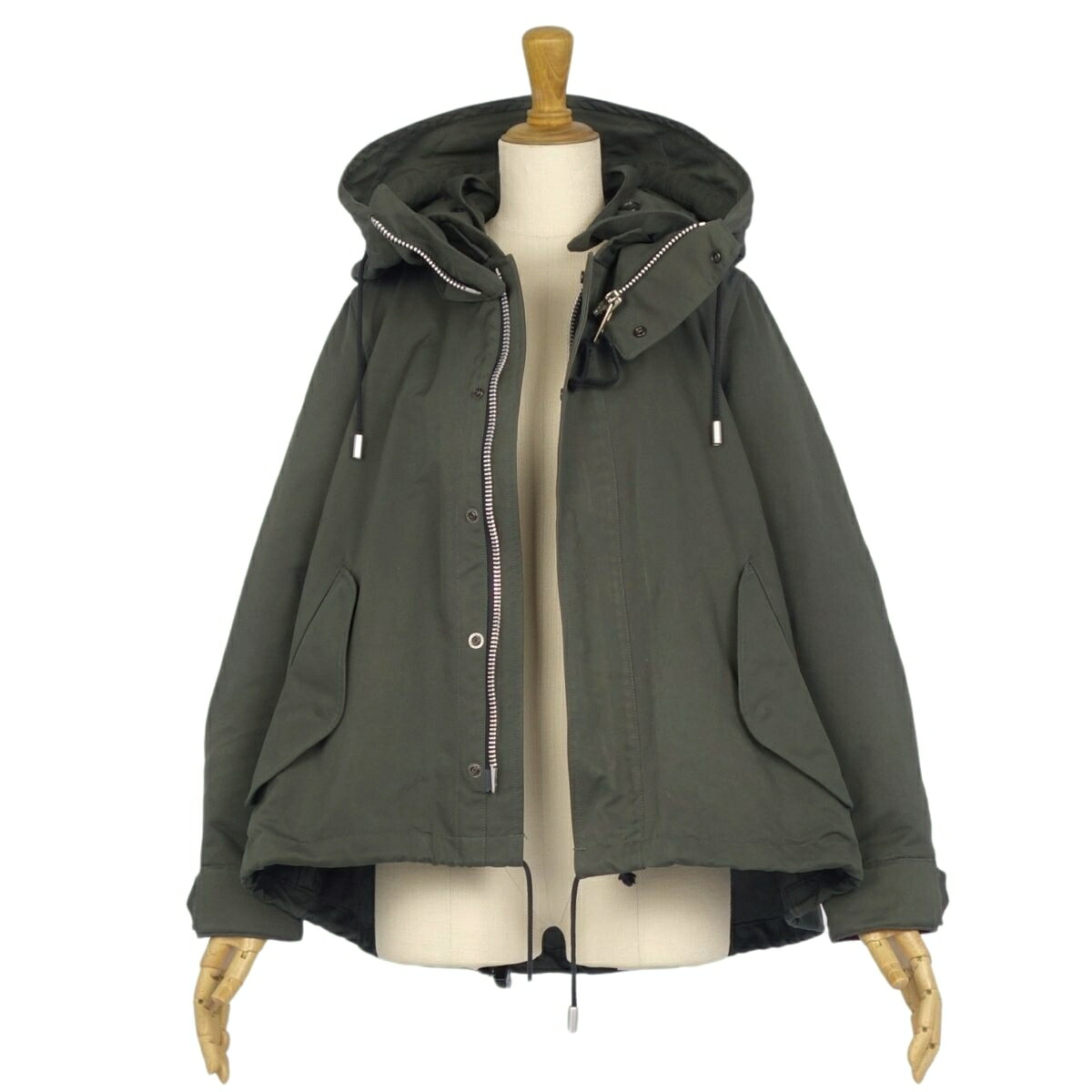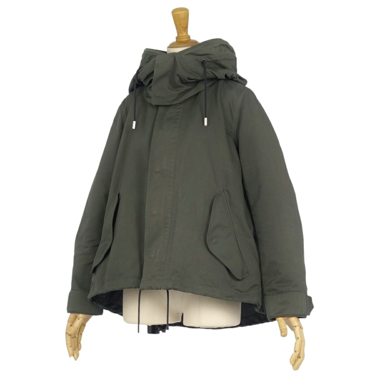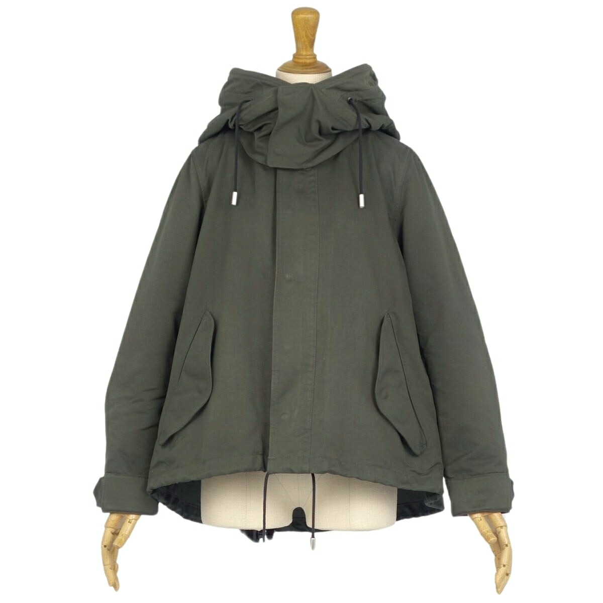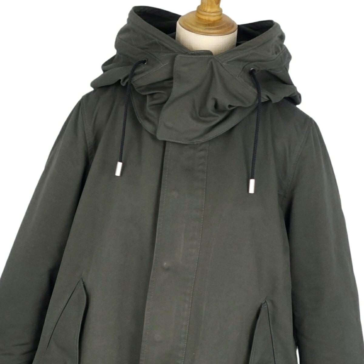 商品名 【美品】ザ リラクス THE RERACS コート フード フーディー ジップアップ ポリエステル 無地 アウター レディース 36(S相当) カーキグリーン【中古】