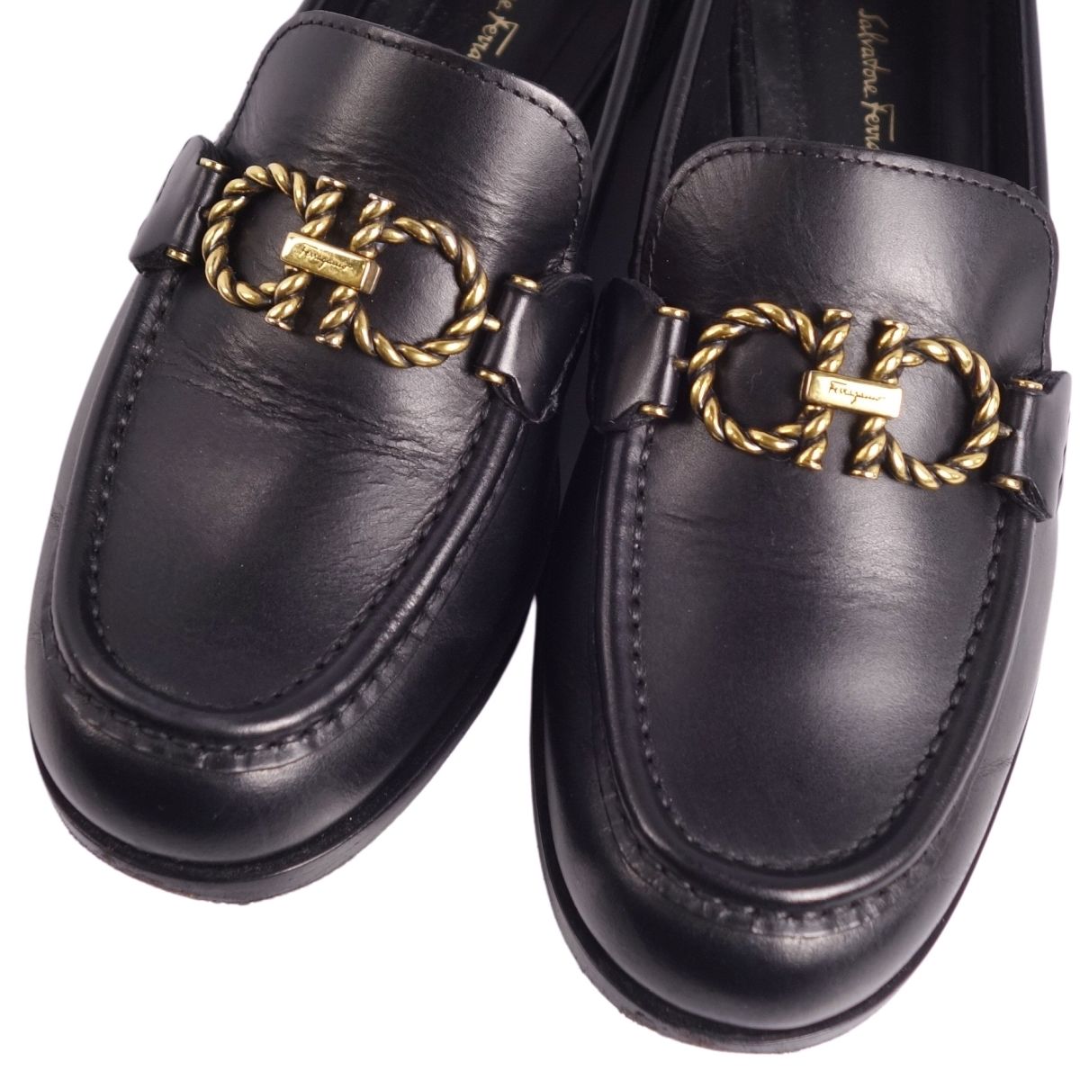 サルヴァトーレ フェラガモ Salvatore Ferragamo ローファー モカシン ガンチーニ シューズ 靴 レディース イタリア製 ブラック サイズ5.5(23cm相当)