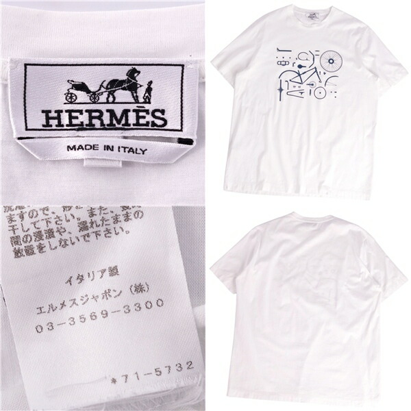 エルメス HERMES Tシャツ カットソー ショートスリーブ 半袖 コットン トップス メンズ イタリア製 ホワイト サイズXL