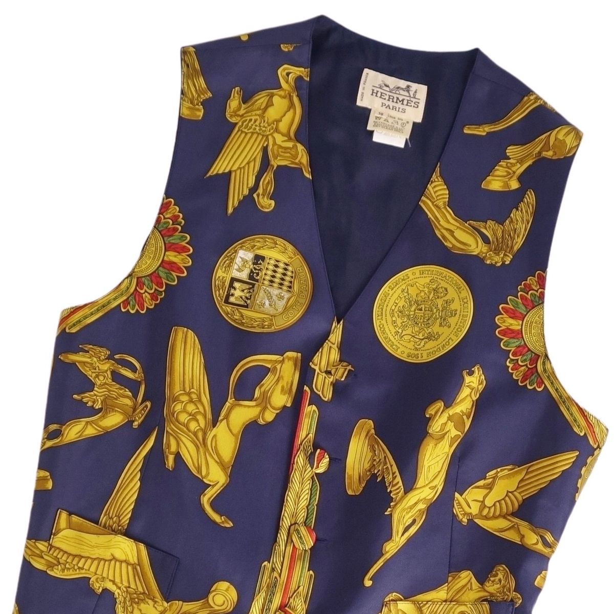 | 商品名 | 【美品】Vintage エルメス HERMES ベスト ジレ 総柄 シルク100% トップス メンズ フランス製 50(M相当) マルチカラー【中古】 |