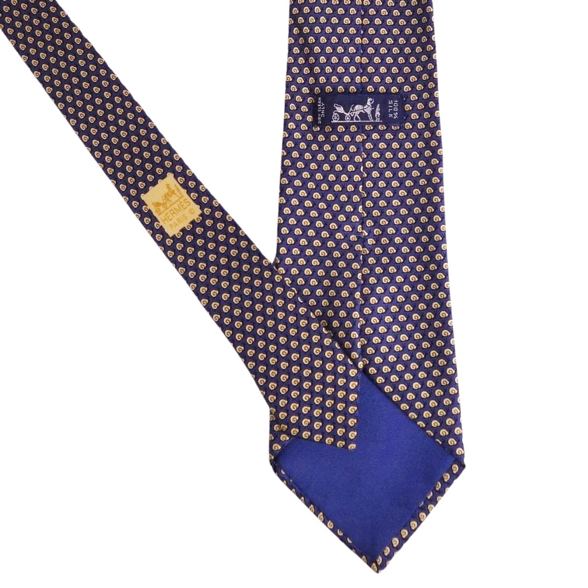 エルメス HERMES ネクタイ 総柄 シルク100% メンズ フランス製 ネイビー サイズ-