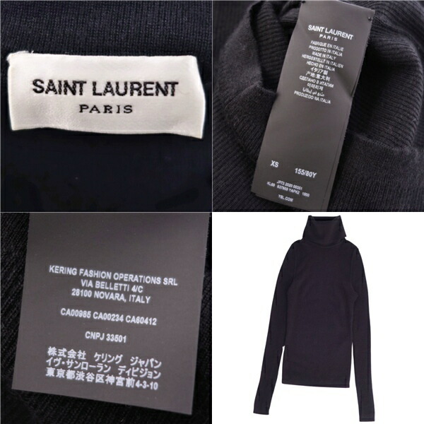 商品名 【美品】サンローラン パリ SAINT LAURENT PARIS 2020年 ニット セーター タートルネック ロングスリーブ 長袖 カシミヤ ウール トップス レディース XS ブラック【中古】