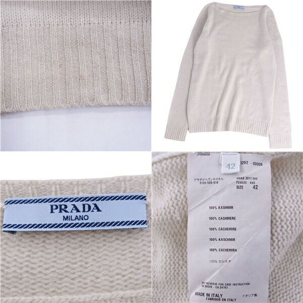 プラダ PRADA ニット セーター ロングスリーブ 長袖 無地 カシミヤ100% トップス レディース アイボリー サイズ42(M相当)