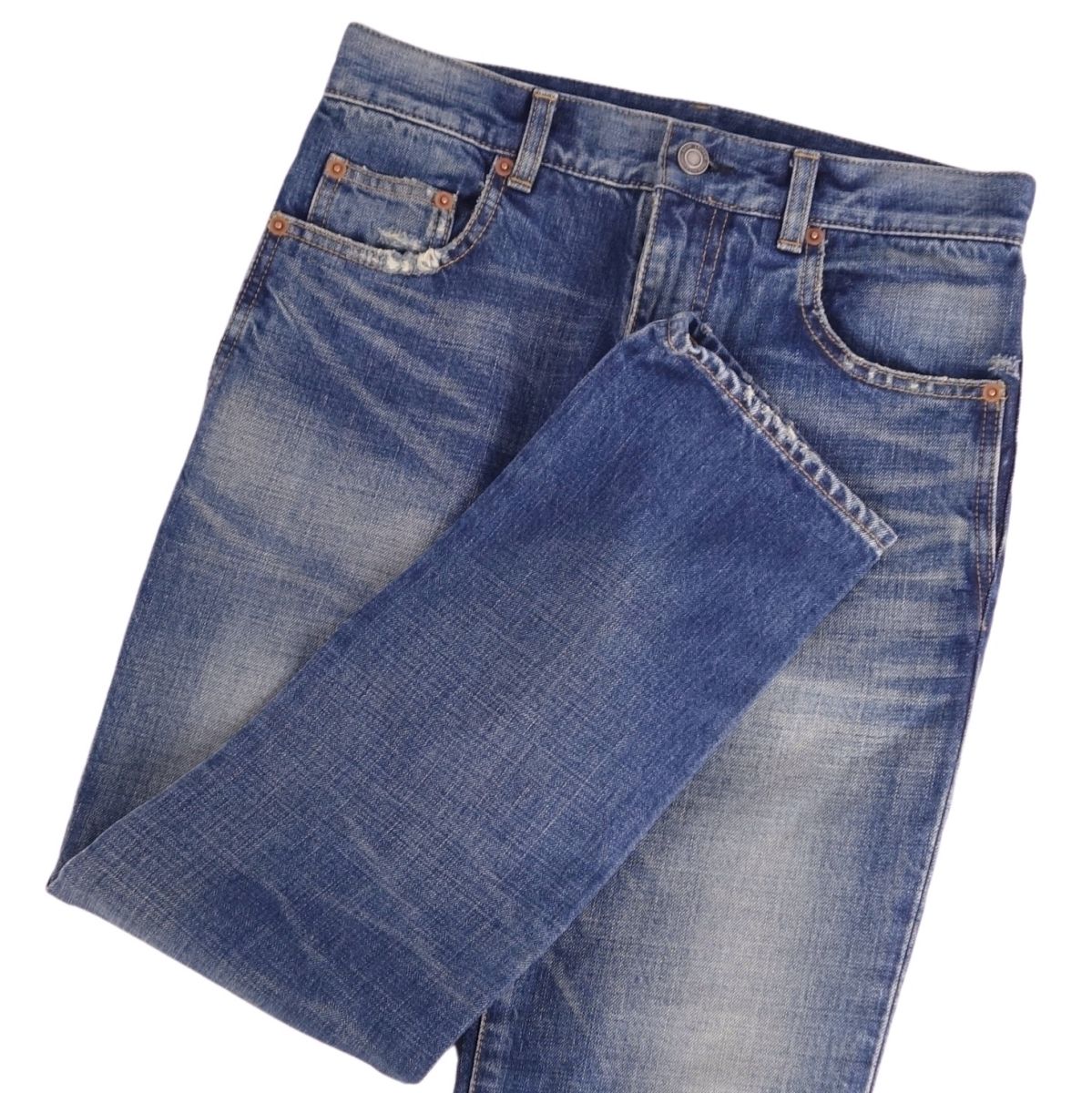 商品名 【美品】サンローラン パリ SAINT LAURENT PARIS 2022年 パンツ デニムパンツ ジーンズ ダメージ加工 無地 コットン ボトムス レディース 25 インディゴブルー【中古】