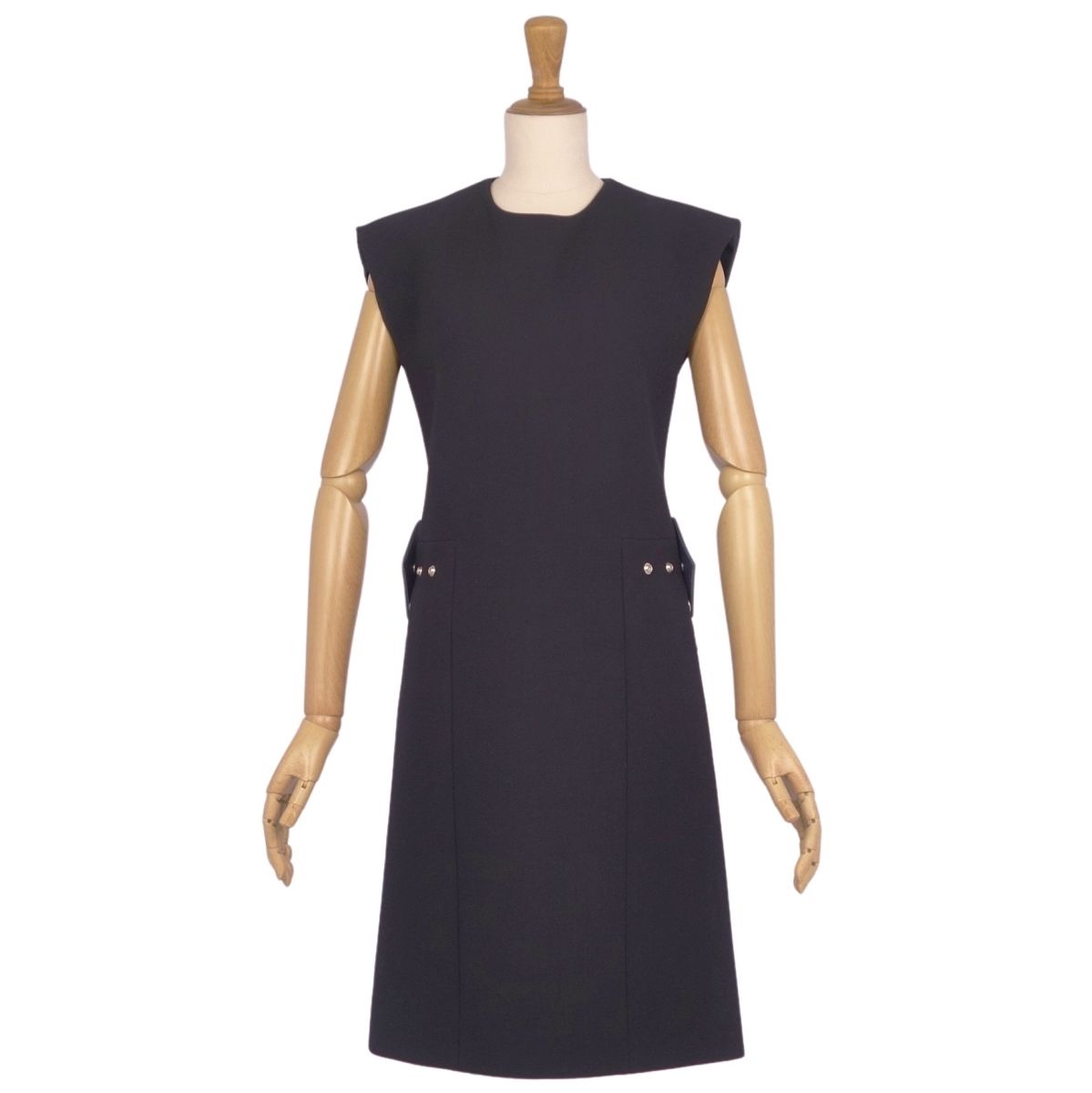 セリーヌ CELINE ワンピース フィービー期 ノースリーブ レザーベルト ウール トップス レディース フランス製 ブラック サイズ34(S相当)