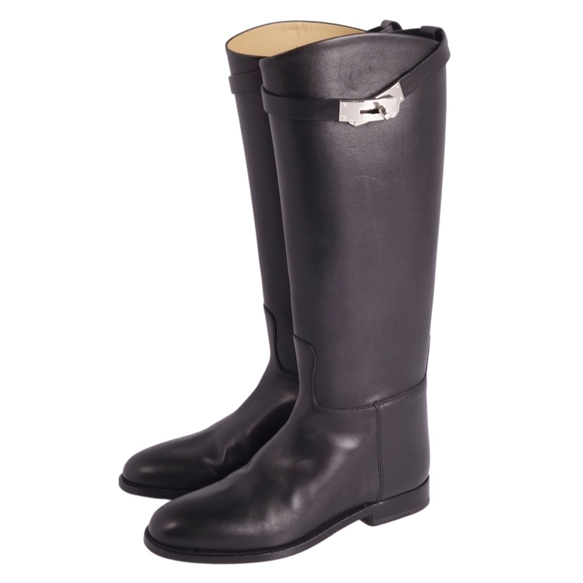 エルメス HERMES ブーツ 2021 ロングブーツ ジャンピングブーツ ケリー金具 レザー シューズ レディース ブラック サイズ35.5(22.5cm相当)
