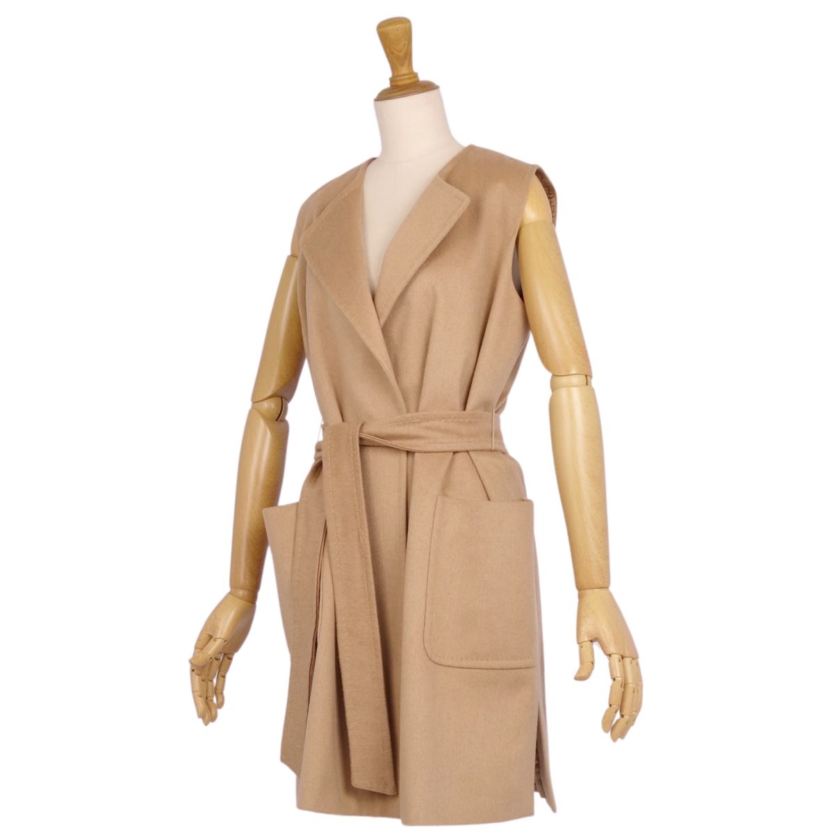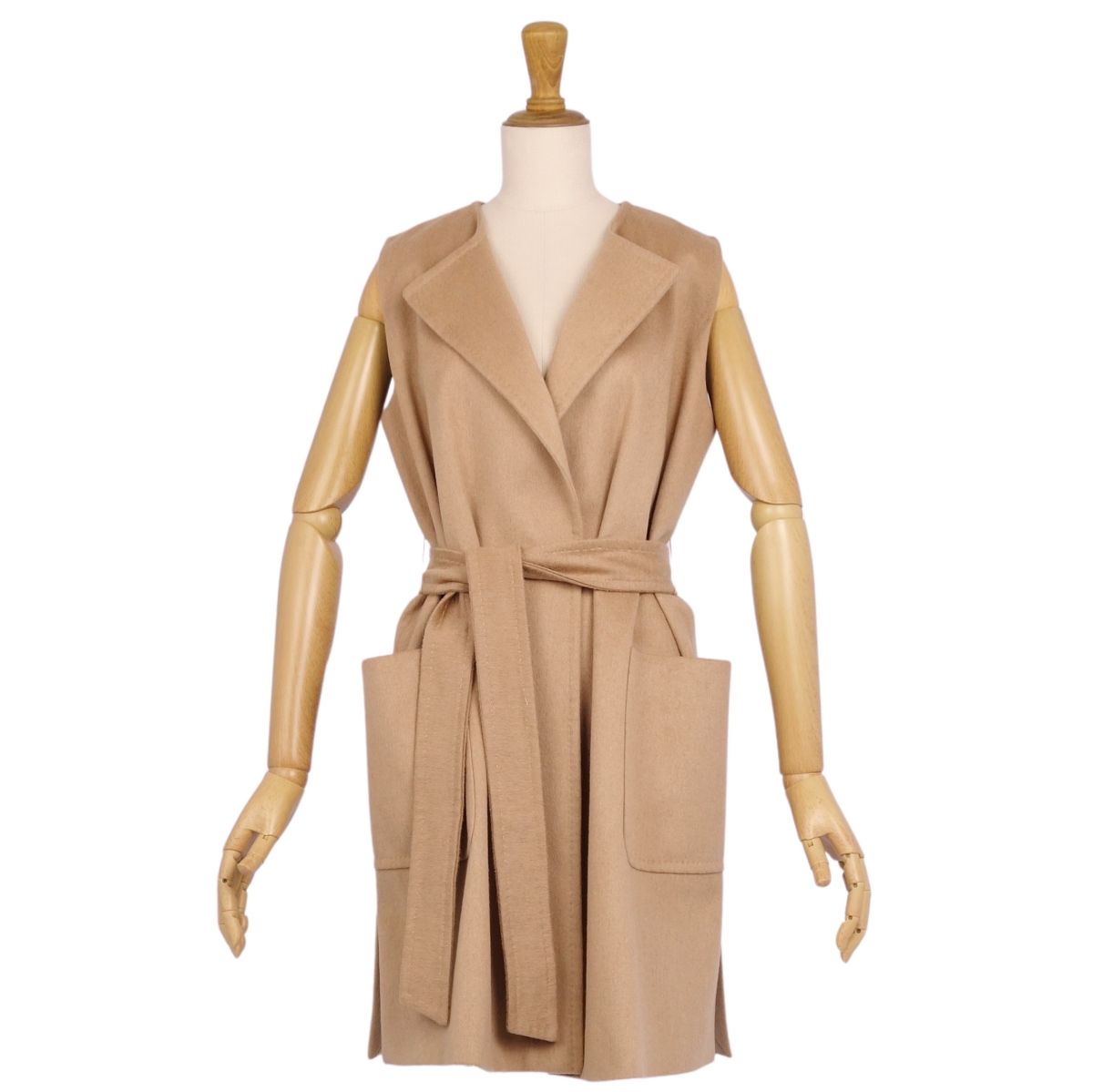マックスマーラ Max Mara コート 白タグ ノースリーブ キャメルヘアー100% アウター レディース イタリア製 ベージュ サイズJI40 USA6 GB8(M相当)
