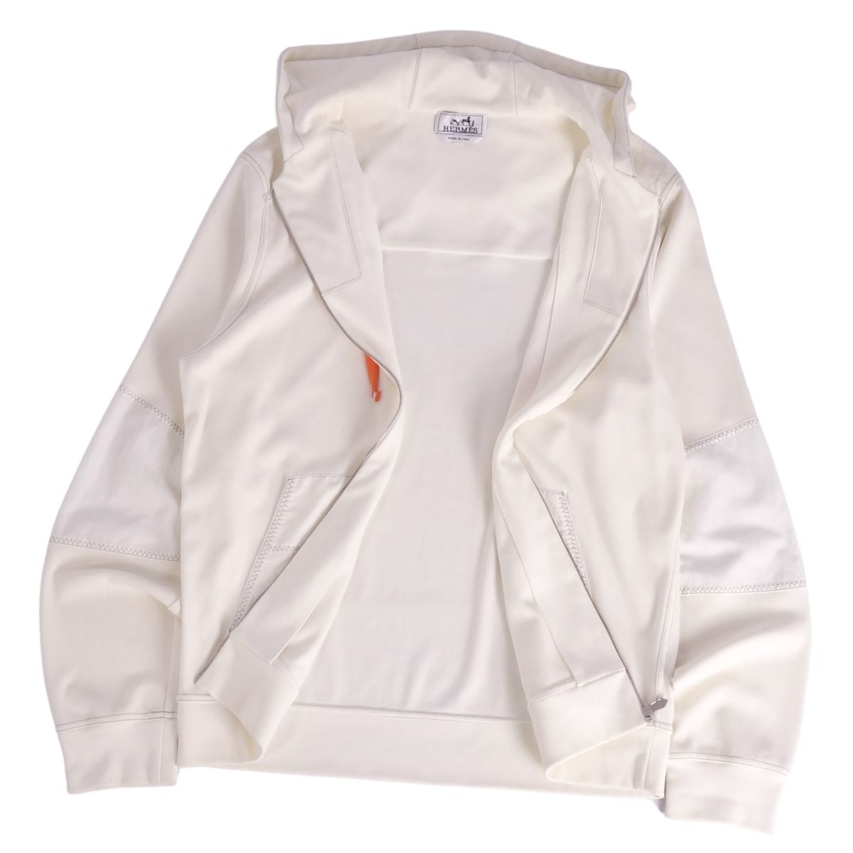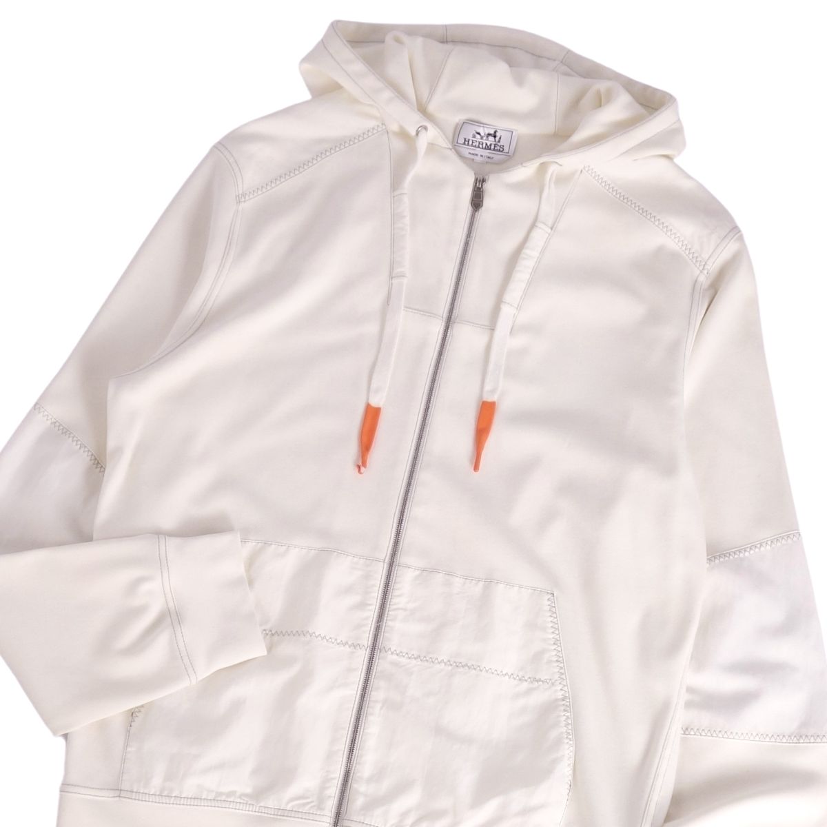商品名 エルメス HERMES パーカー 22SS フーディー スウェット ヴォワルH ジップアップ ナイロン切り替え トップス メンズ イタリア製 S ホワイト【中古】