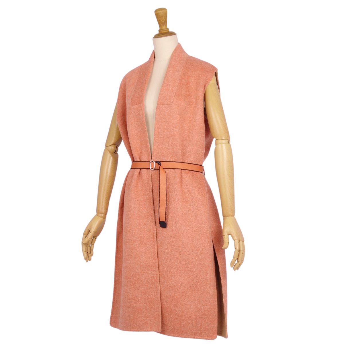 エルメス HERMES コート ロングジレ ノースリーブ カシミヤ アウター レディース フランス製 オレンジ サイズ36(S相当)