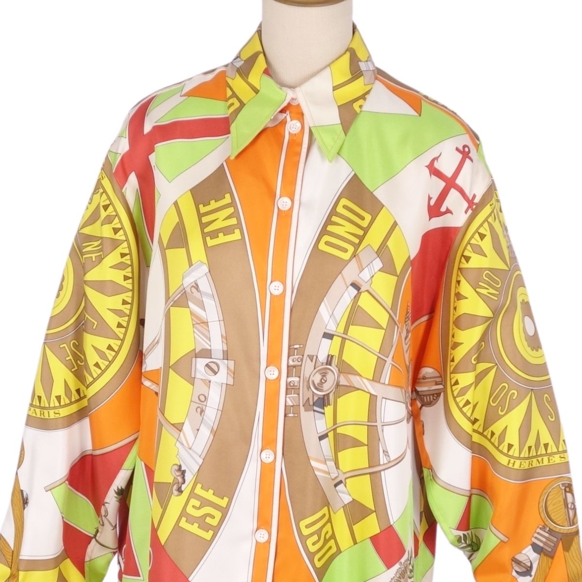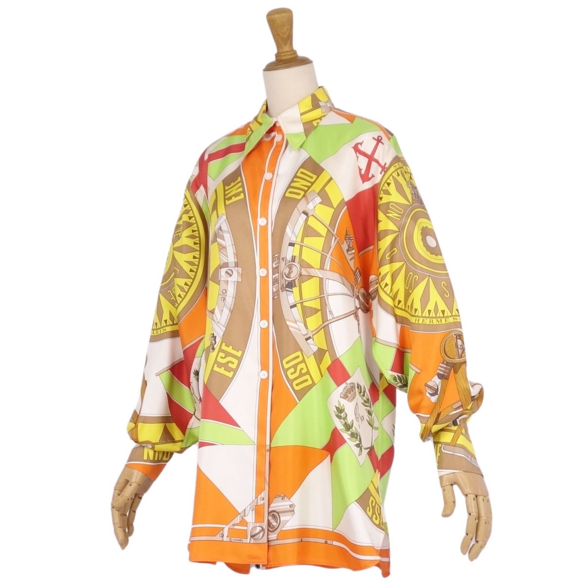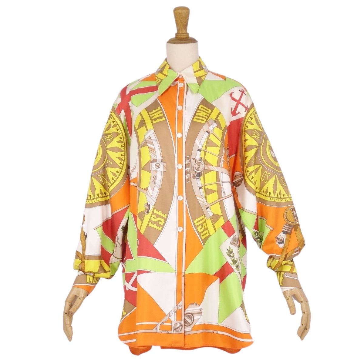 【極美品】Vintage エルメス HERMES シャツ ブラウス ロングスリーブ 長袖 総柄 シルク トップス レディース フランス製 38(M相当) マルチカラー【中古】