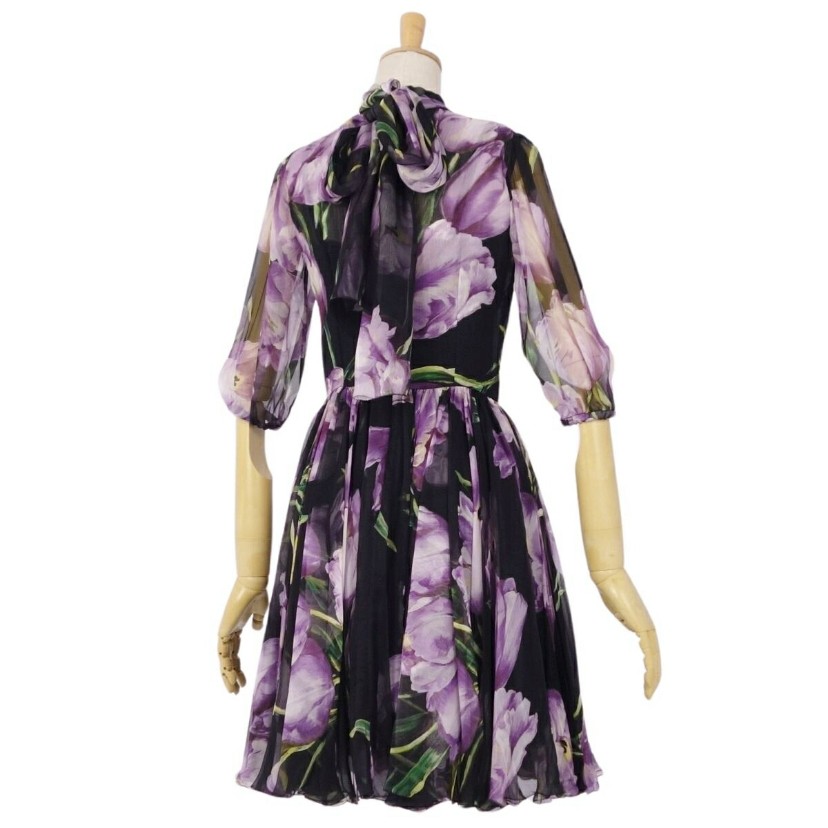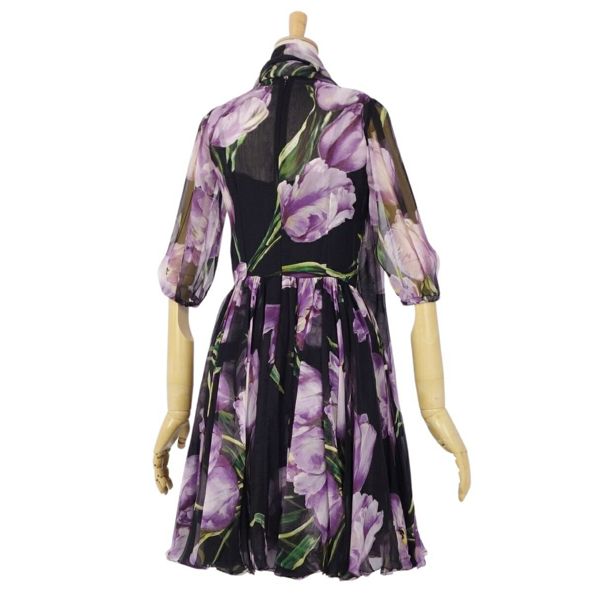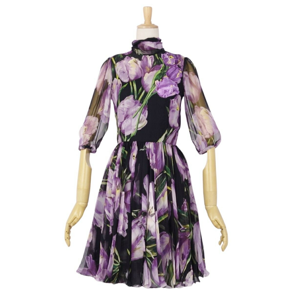 ドルチェ&ガッバーナ DOLCE&GABBANA ワンピース ロングスリーブ 総柄 花柄 刺繍 シルク トップス レディース イタリア製 ブラック サイズ36(S相当)