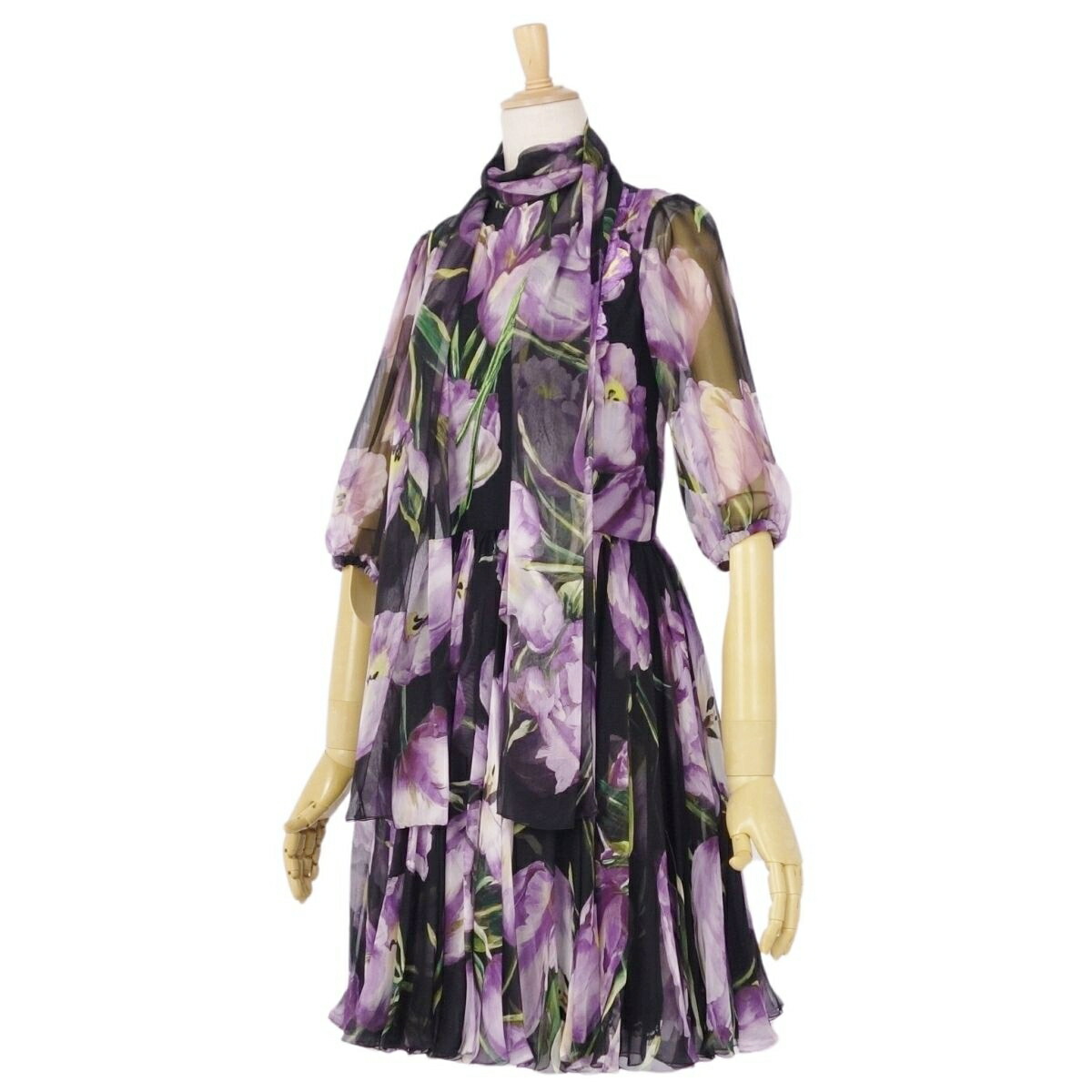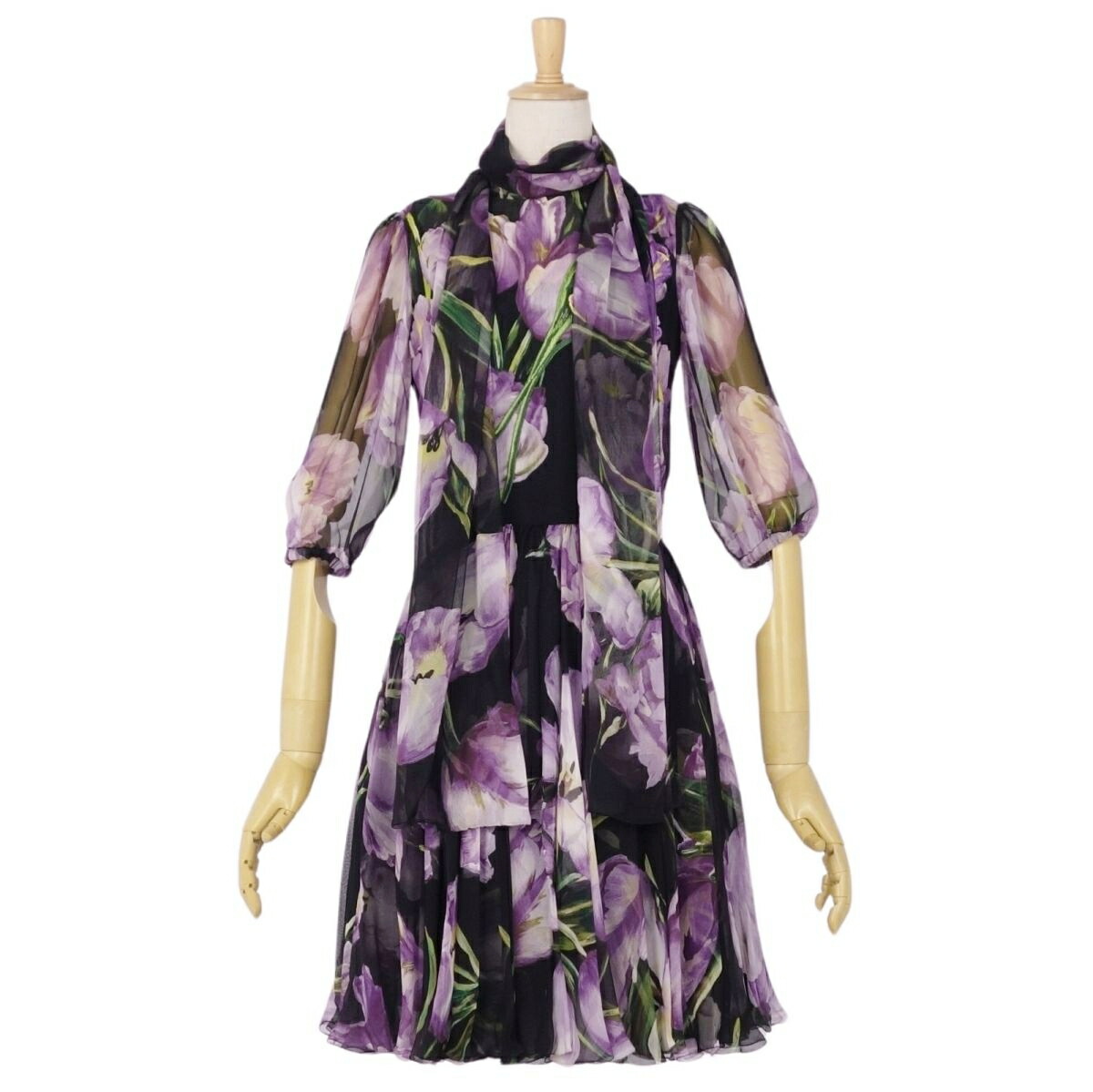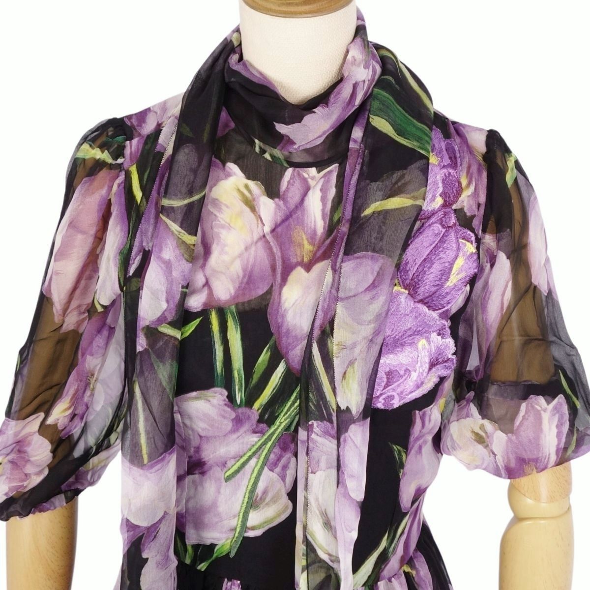 ドルチェ&ガッバーナ DOLCE&GABBANA ワンピース ロングスリーブ 総柄 花柄 刺繍 シルク トップス レディース イタリア製 ブラック サイズ36(S相当)