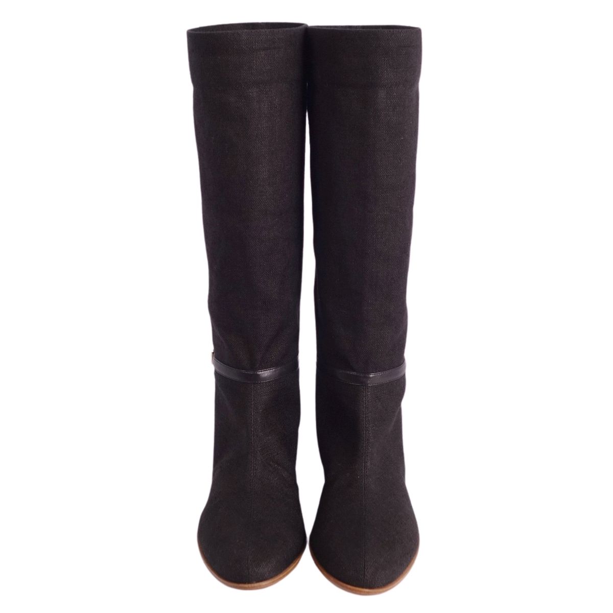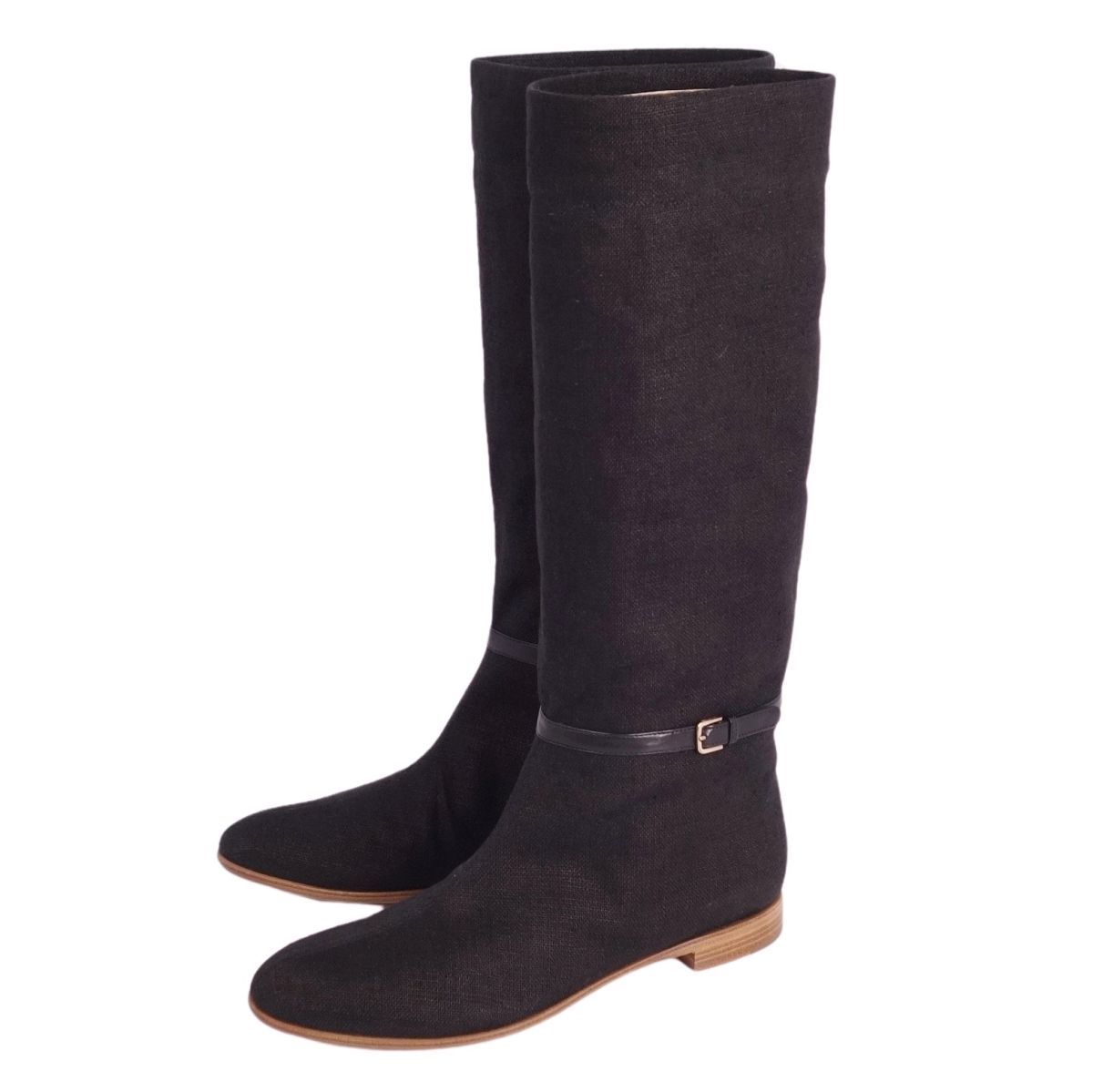 セルジオロッシ SERGIO ROSSI ブーツ ロングブーツ キャンバス リネン イタリア製 シューズ 靴 レディース ブラック サイズ35.5(22.5cm相当)