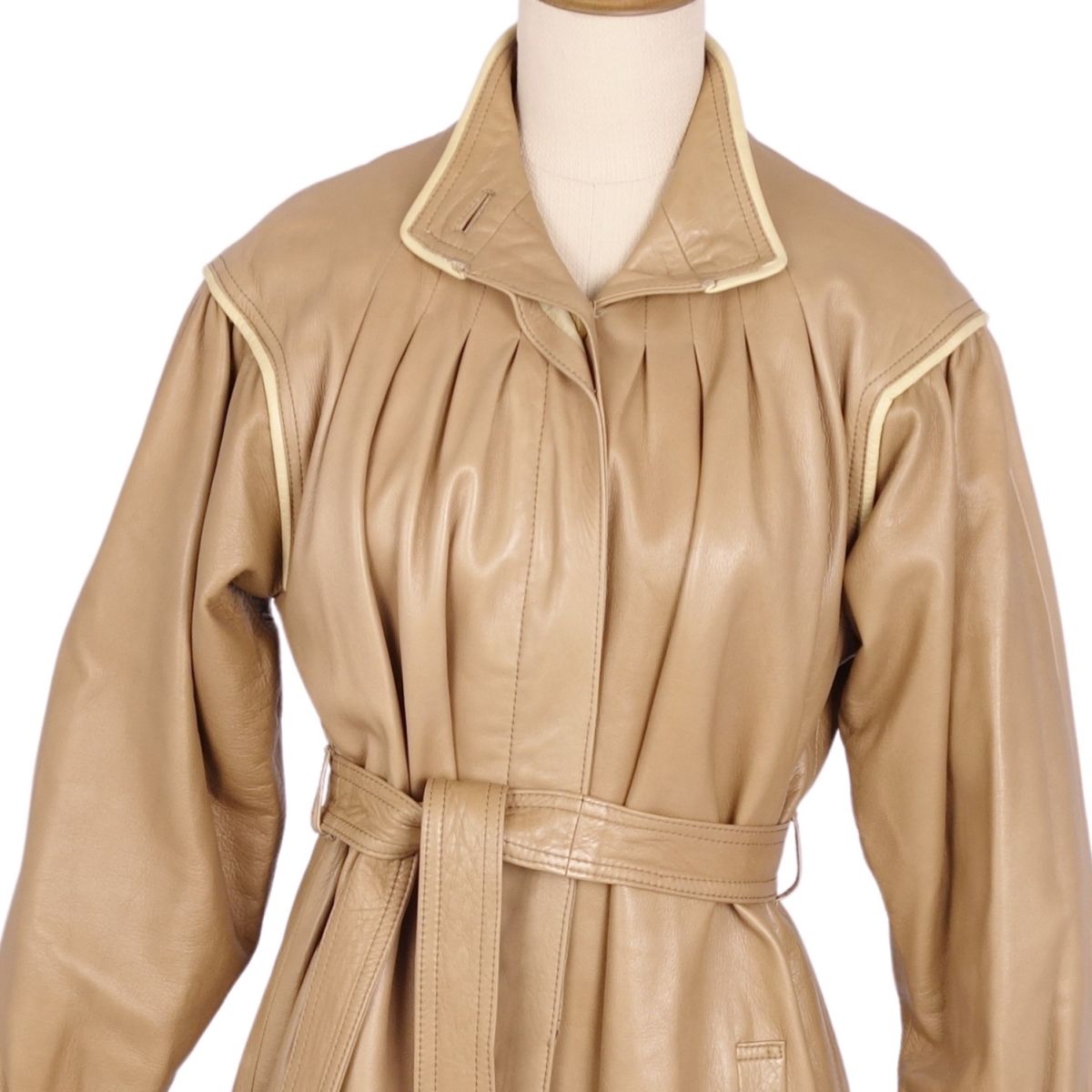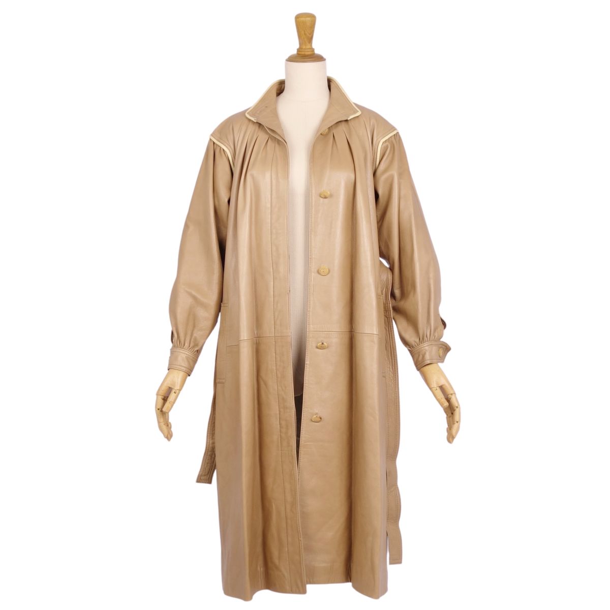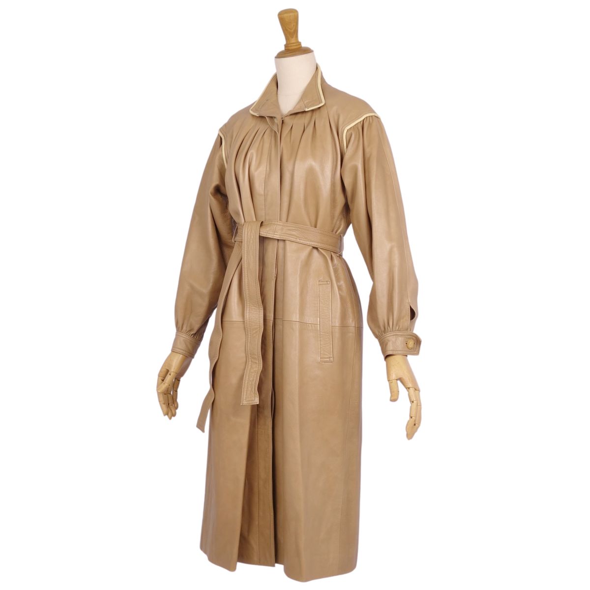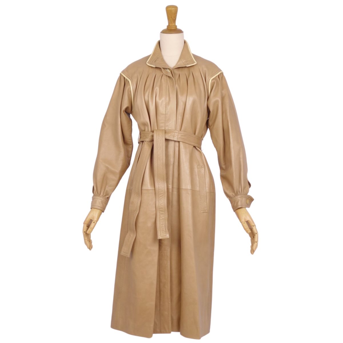 Vintage ロエベ LOEWE コート ベルト付き ロングコート ラムレザー 本革 アウター レディース スペイン製 ライトブラウン サイズ36