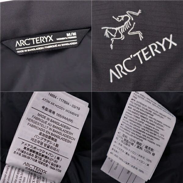 アークテリクス ARCTERYX ジャケット アトム ATOM AR HOODY 中綿入り ナイロン アウター レディース ブラック サイズM