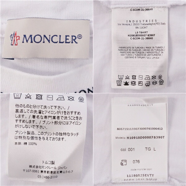| 商品名 | 【美品】モンクレール MONCLER Tシャツ 2021 カットソー ロングスリーブ 長袖 コットン トップス メンズ L ホワイト【中古】 |