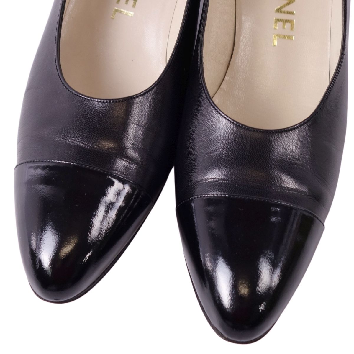 Vintage シャネル CHANEL パンプス レザー パテントレザー ヒール シューズ 靴 レディース フランス製 ブラック サイズ36.5