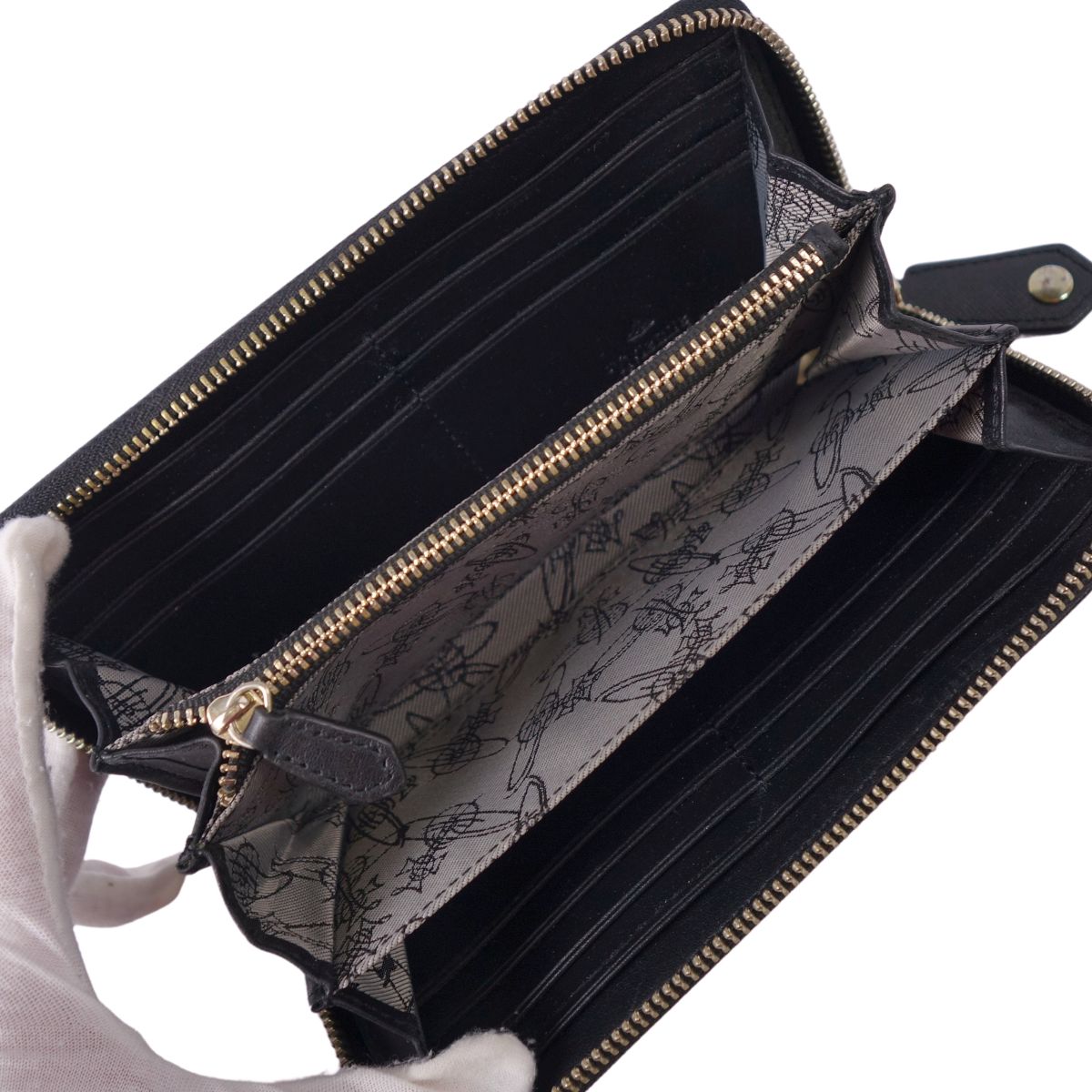 ヴィヴィアンウエストウッド Vivienne Westwood 財布 長財布 ロングウォレット ラウンドファスナー オーブ レザー レディース ブラック サイズ-